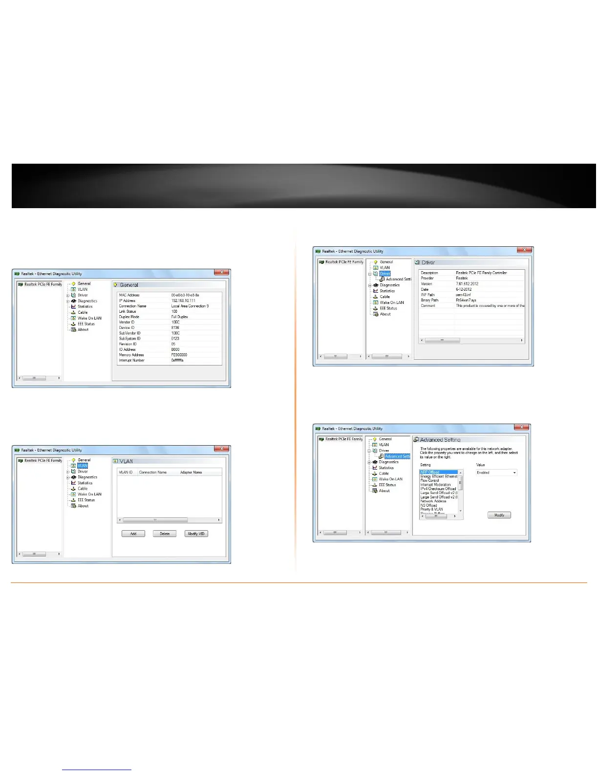 This page shows information about VLANs on current selected network adapter. User