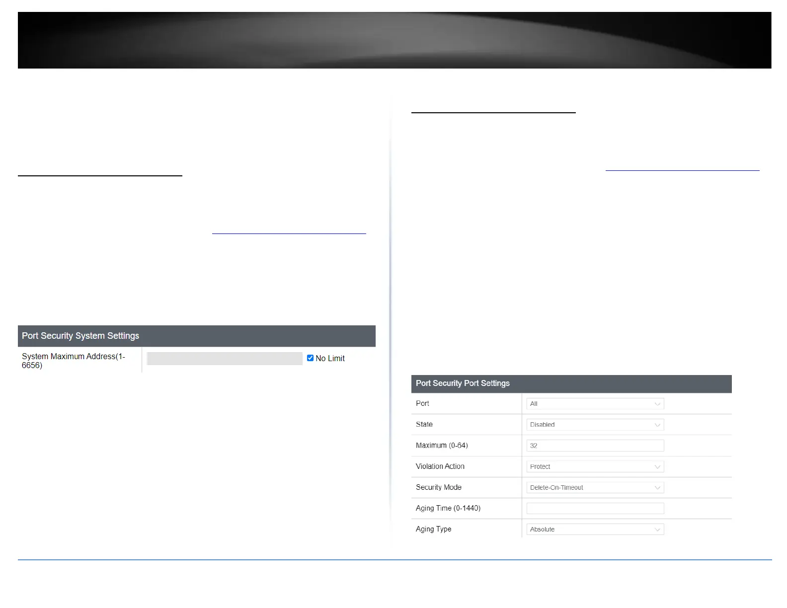 Security > Port Security > Global Settings