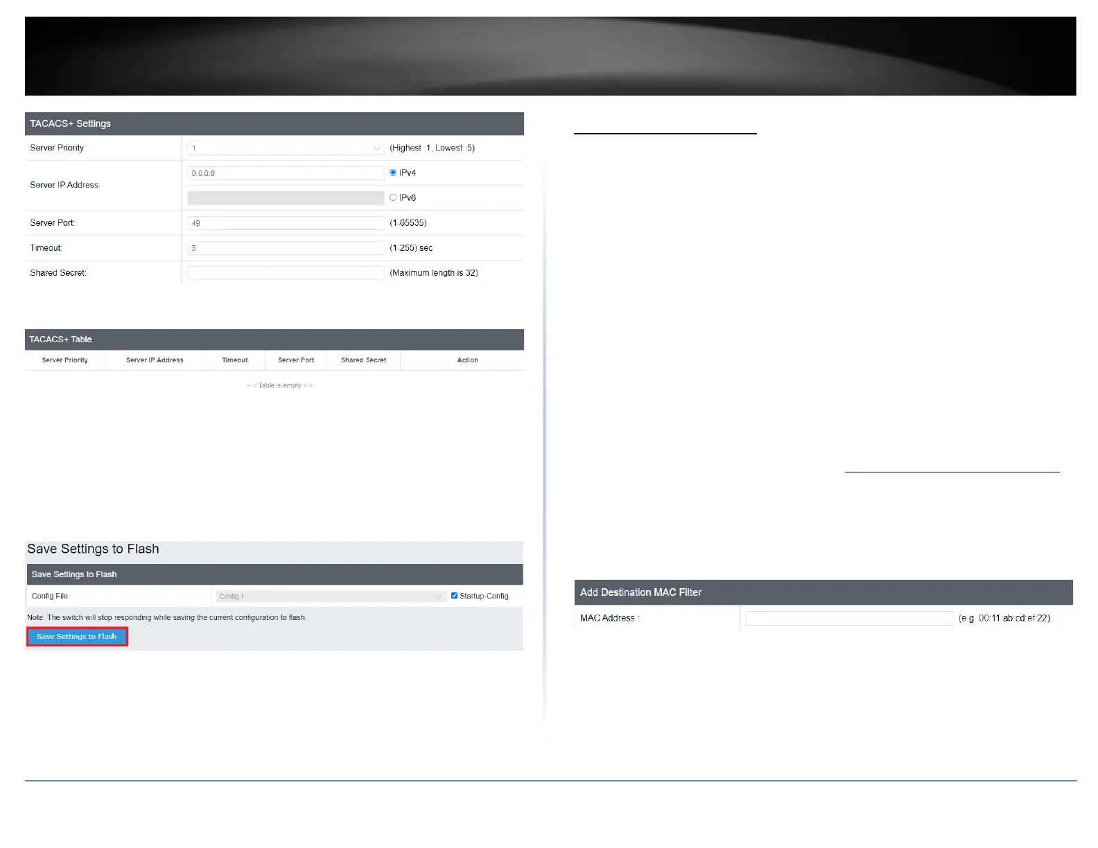 This section contains an explanation of the Destination MAC Filter feature as well a