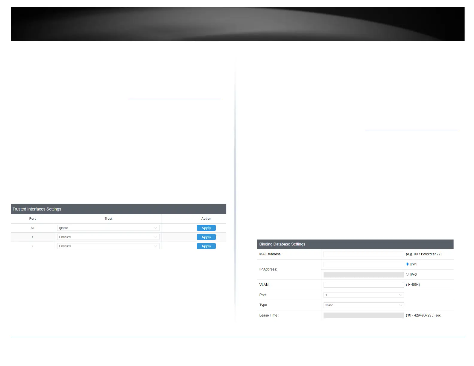 This section allows you to set trusted port interfaces where DHCP servers can be