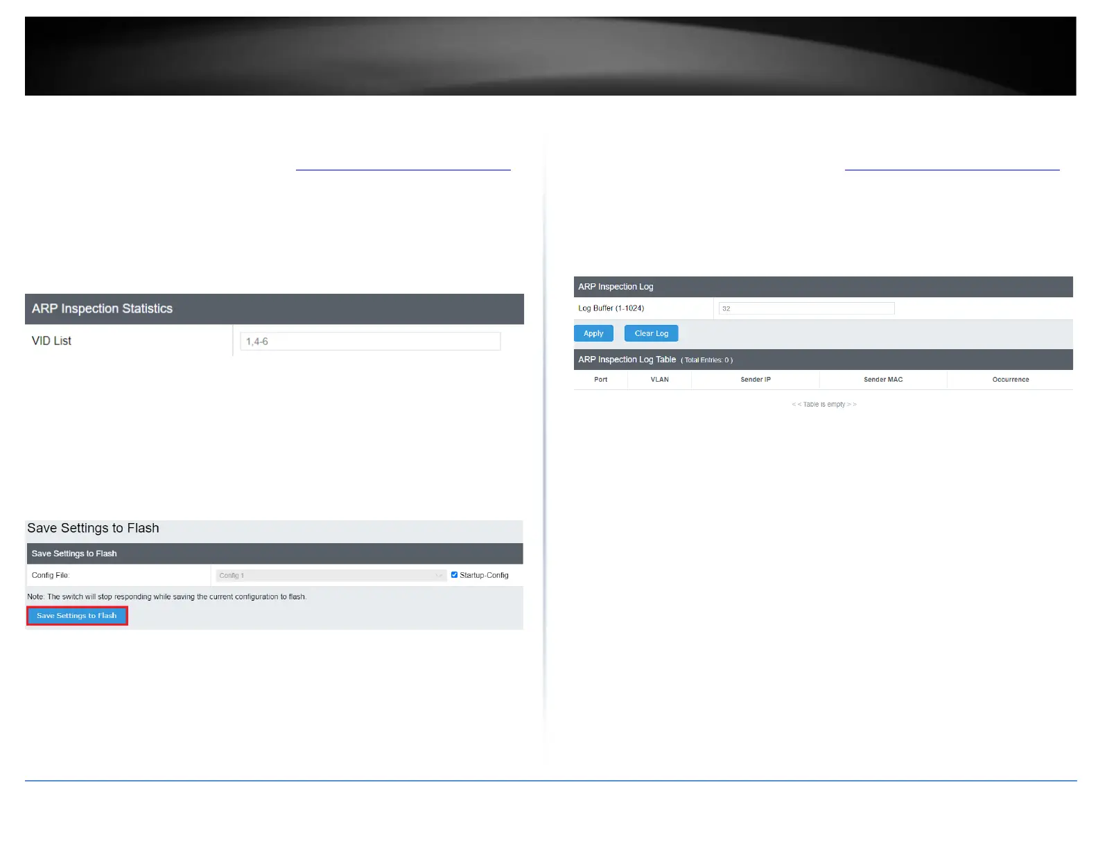 Security > Dynamic ARP Inspection > Log