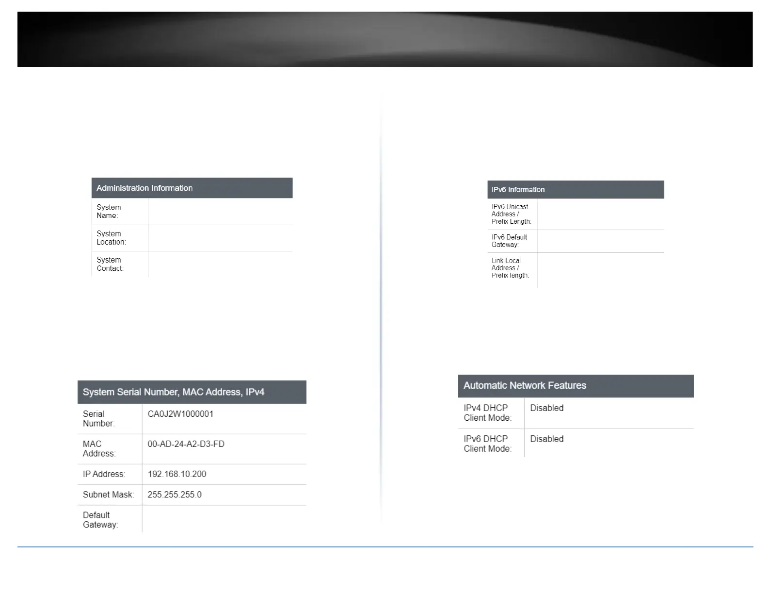 System MAC Address, IPv4 Information