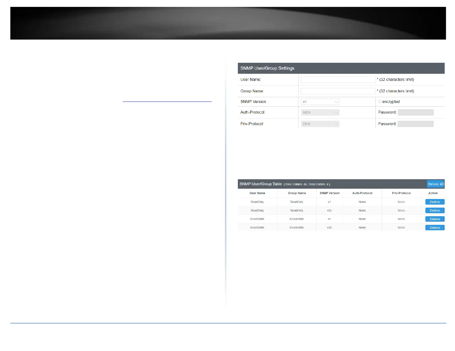 If you need to modify an entry in the SNMP User/Group page, you must first delete the