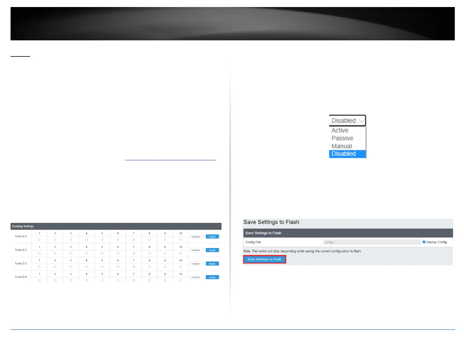 a trunking Name and select the ports to be trunked together, and click Apply to activate