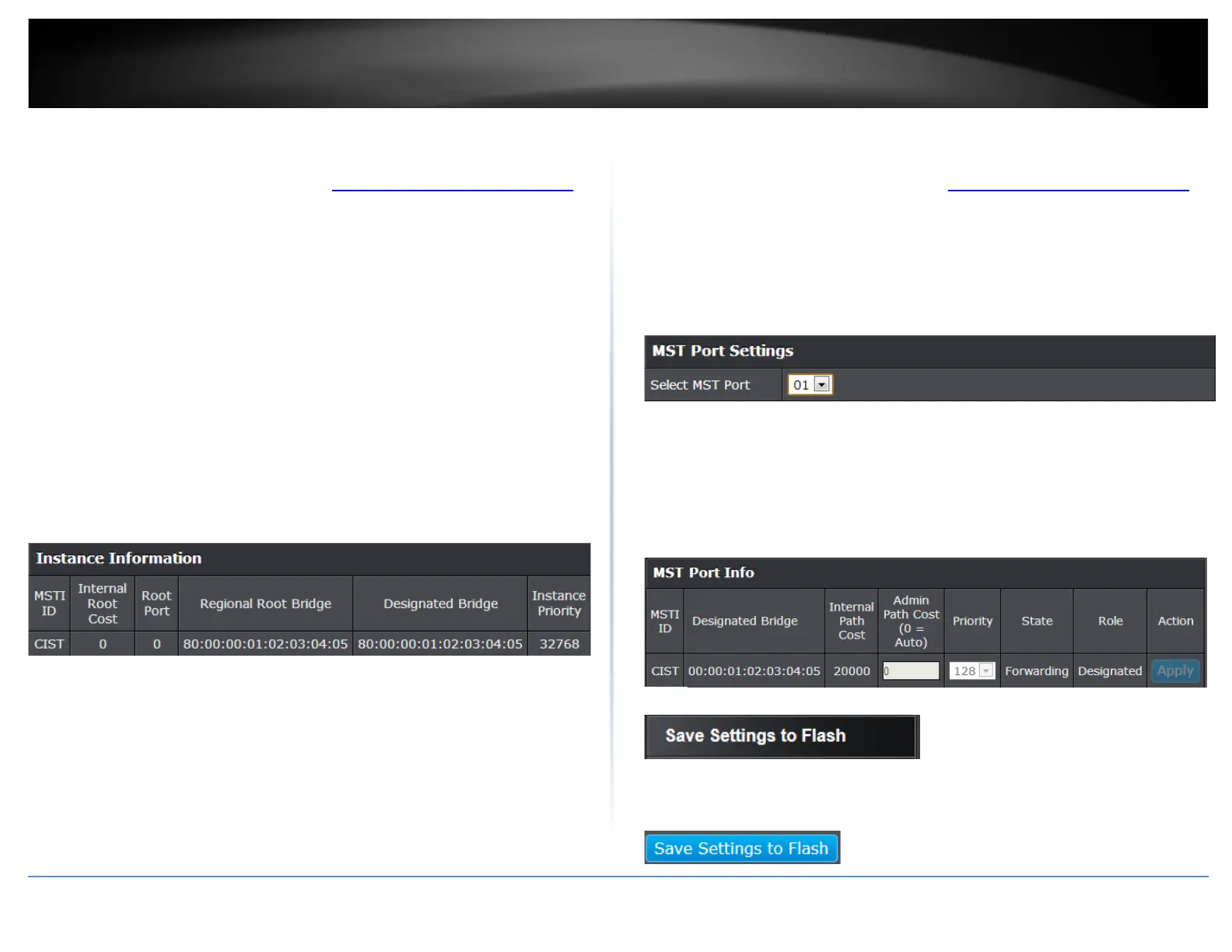 • Select MST Port – Click the drop-down to select which MST port to configure.