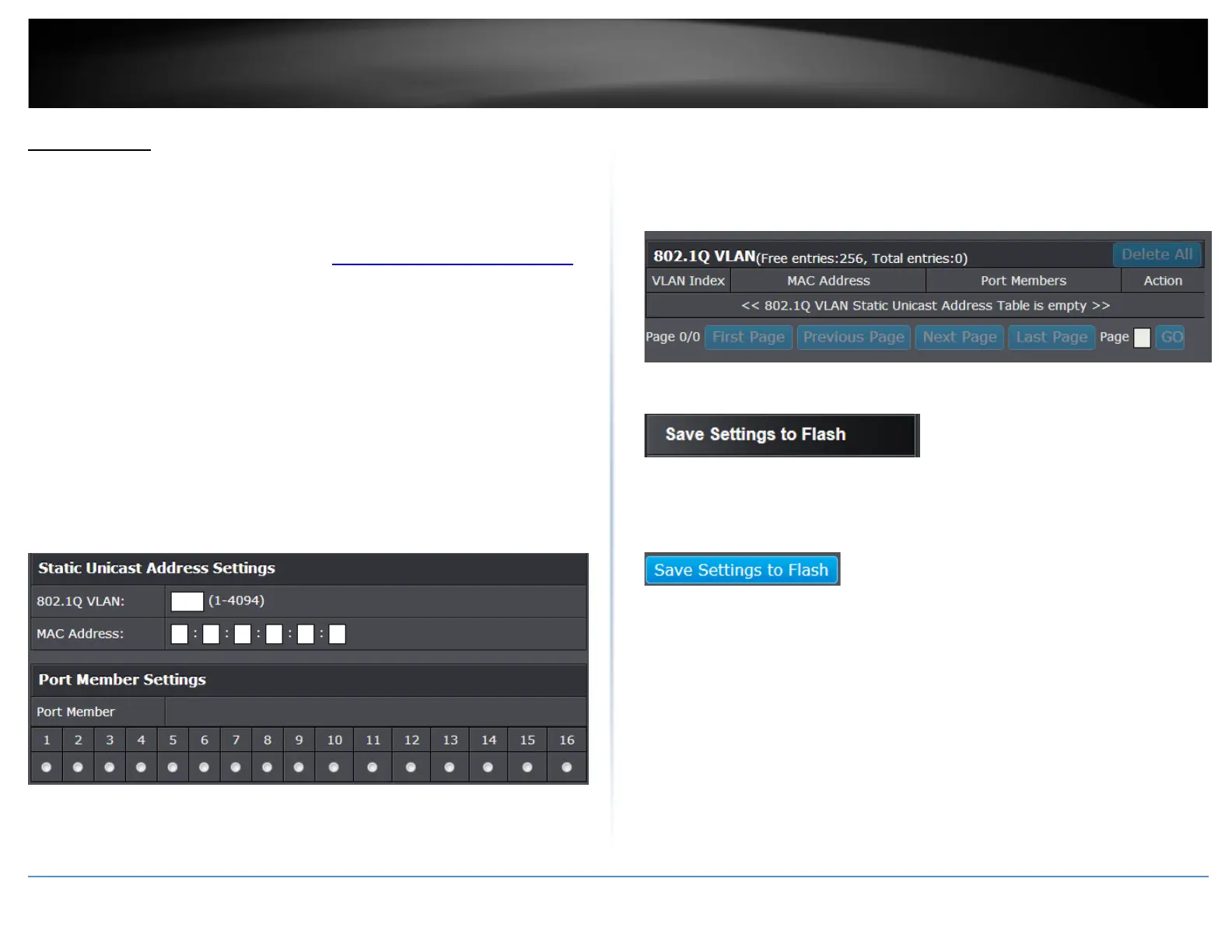 In this section, you can add static unicast entries to the switch configuration.