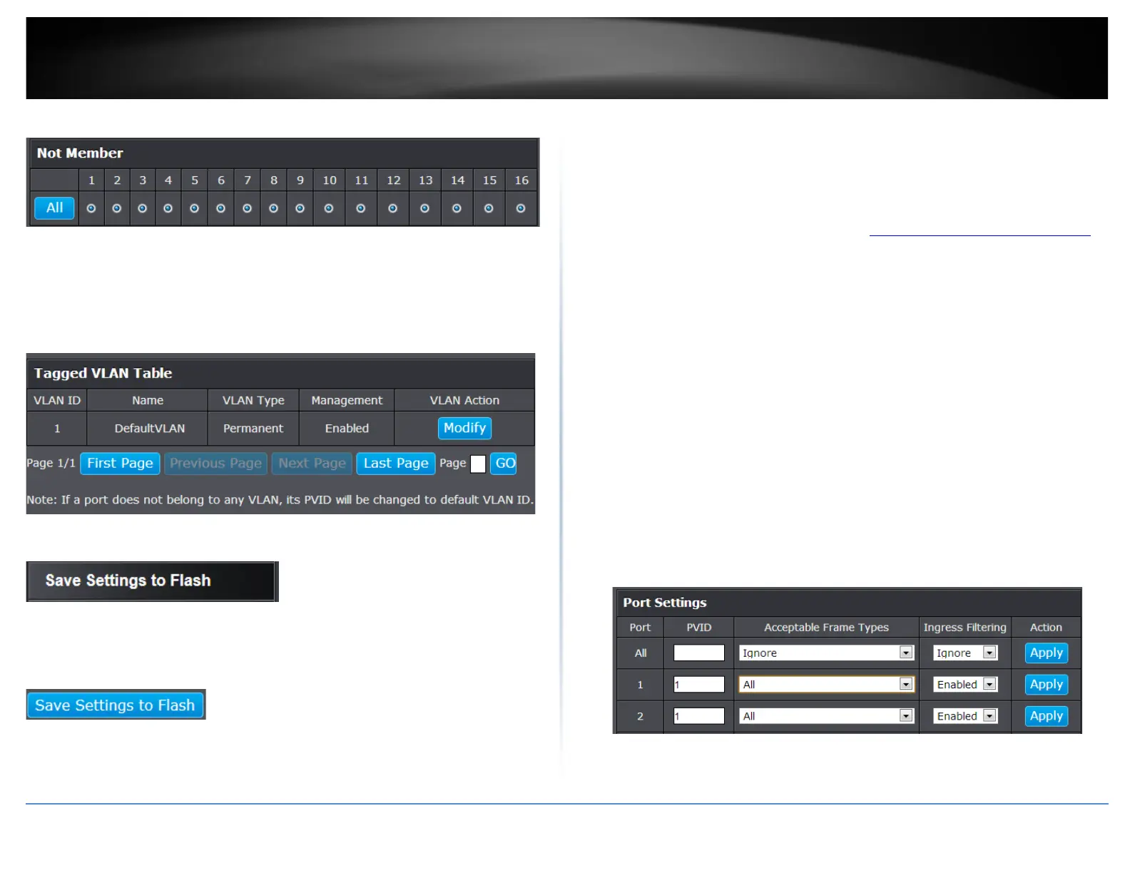 In this section, you can modify the port VID settings, acceptable frame types, and
