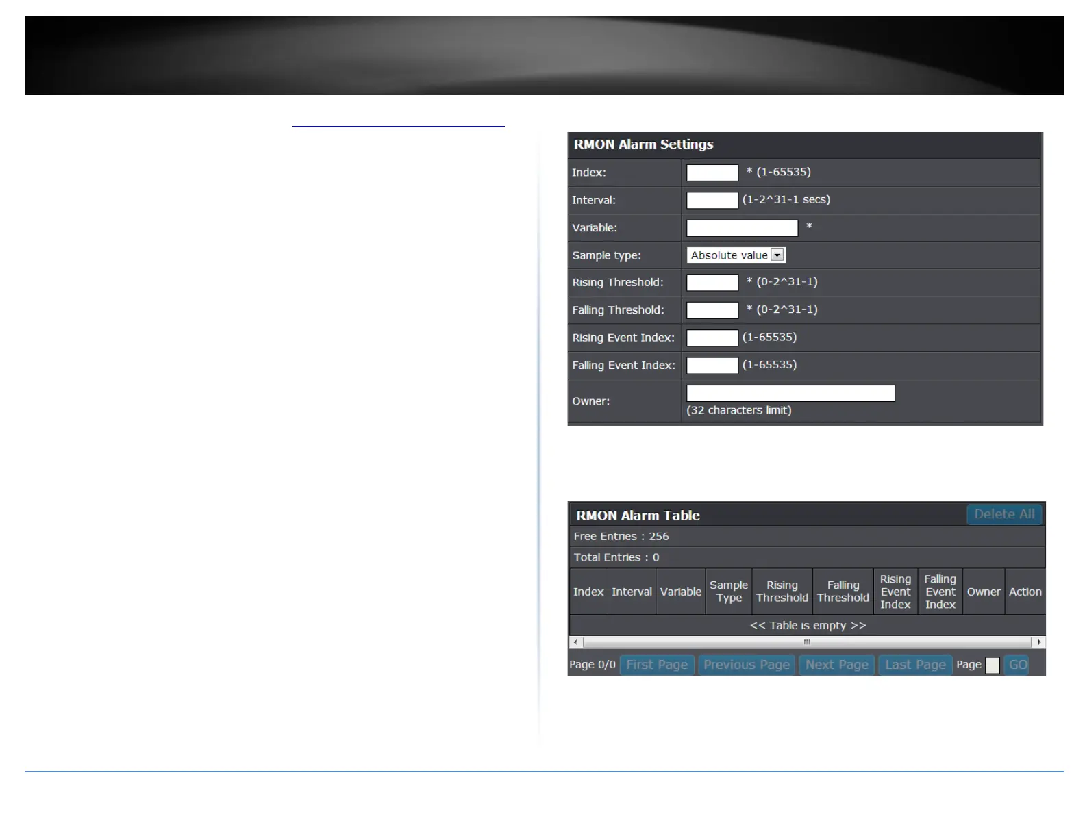 2. Click on RMON and click on Alarm.