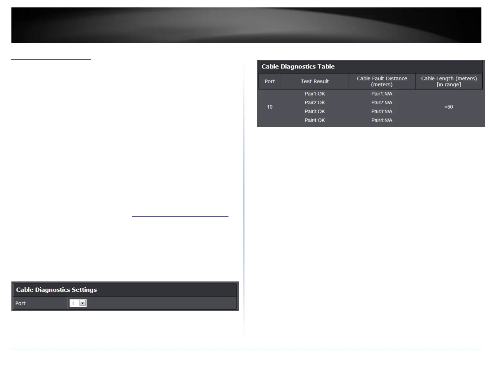 The switch provides a basic cable diagnostic tool in the GUI for verifying the pairs in