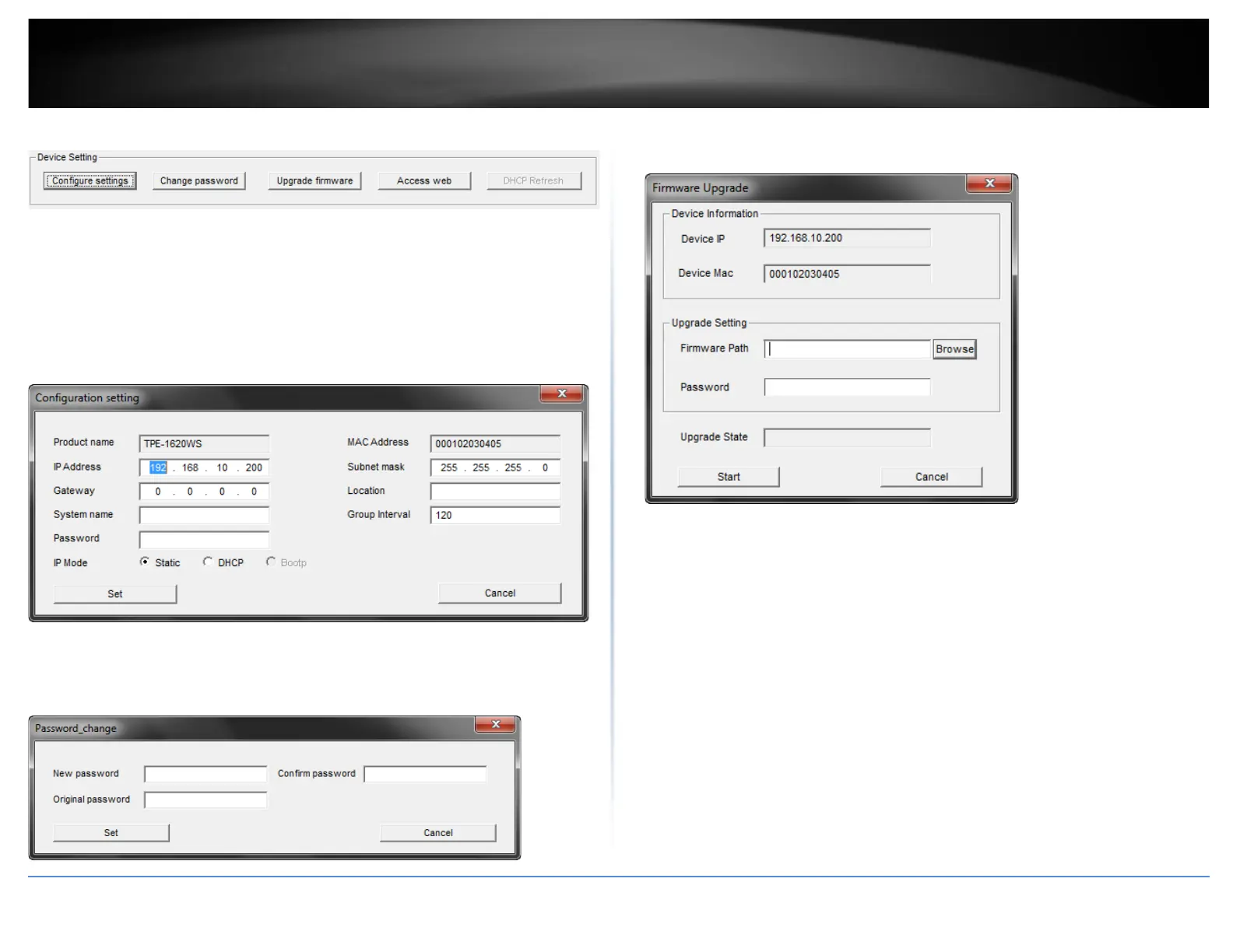 Configuration Setting: In this Configuration Setting, you can set the IP Address, Subnet