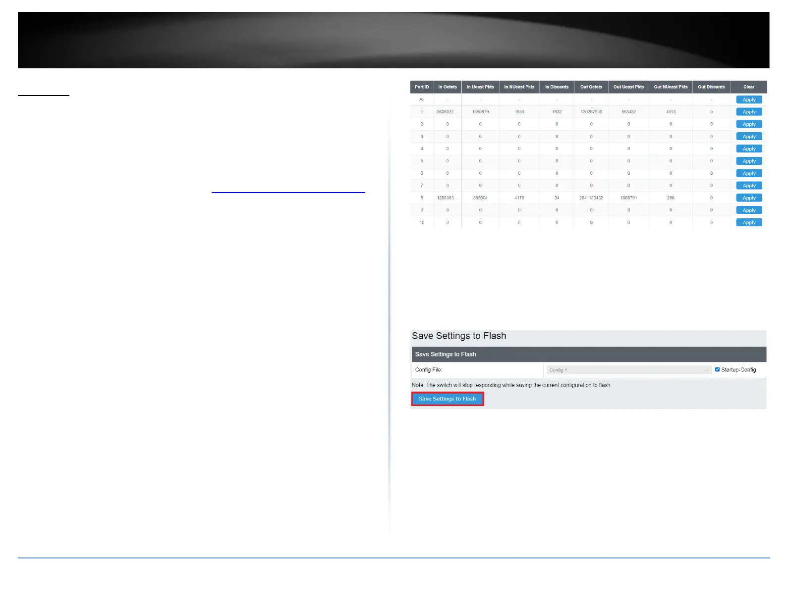 • Apply: Click the Apply button to clear port specific Traffic information.