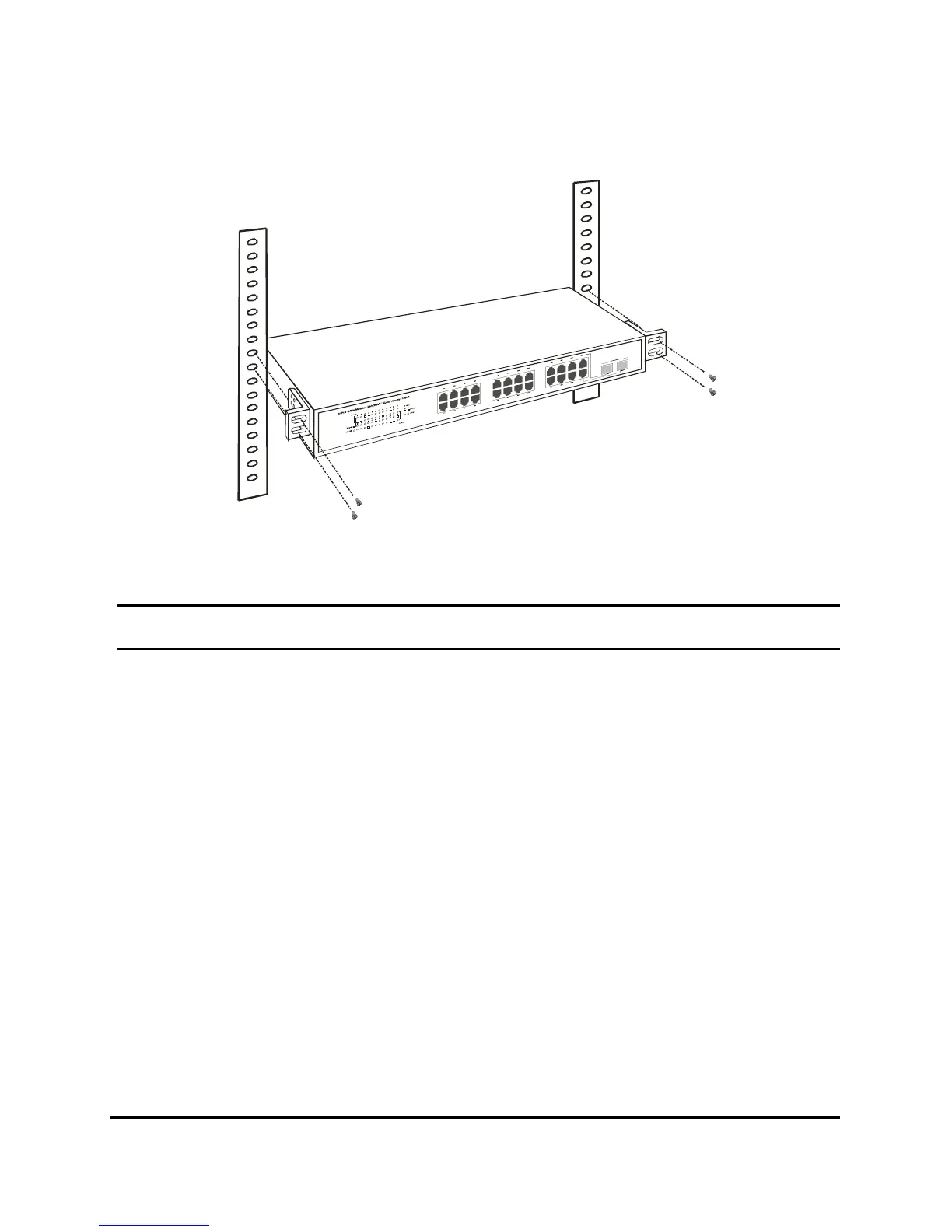 Then, use screws provided with the equipment rack to mount each