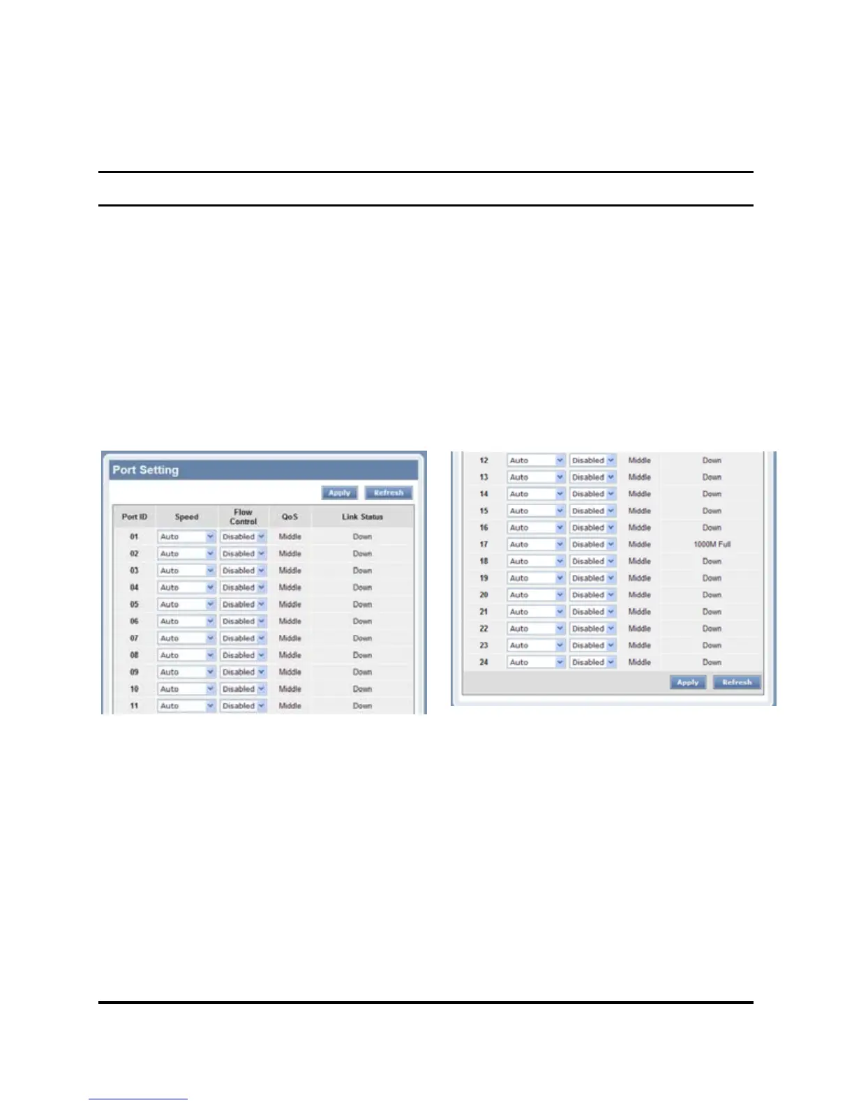 In Port Settings menu (Figure 17), this page will show each port’s