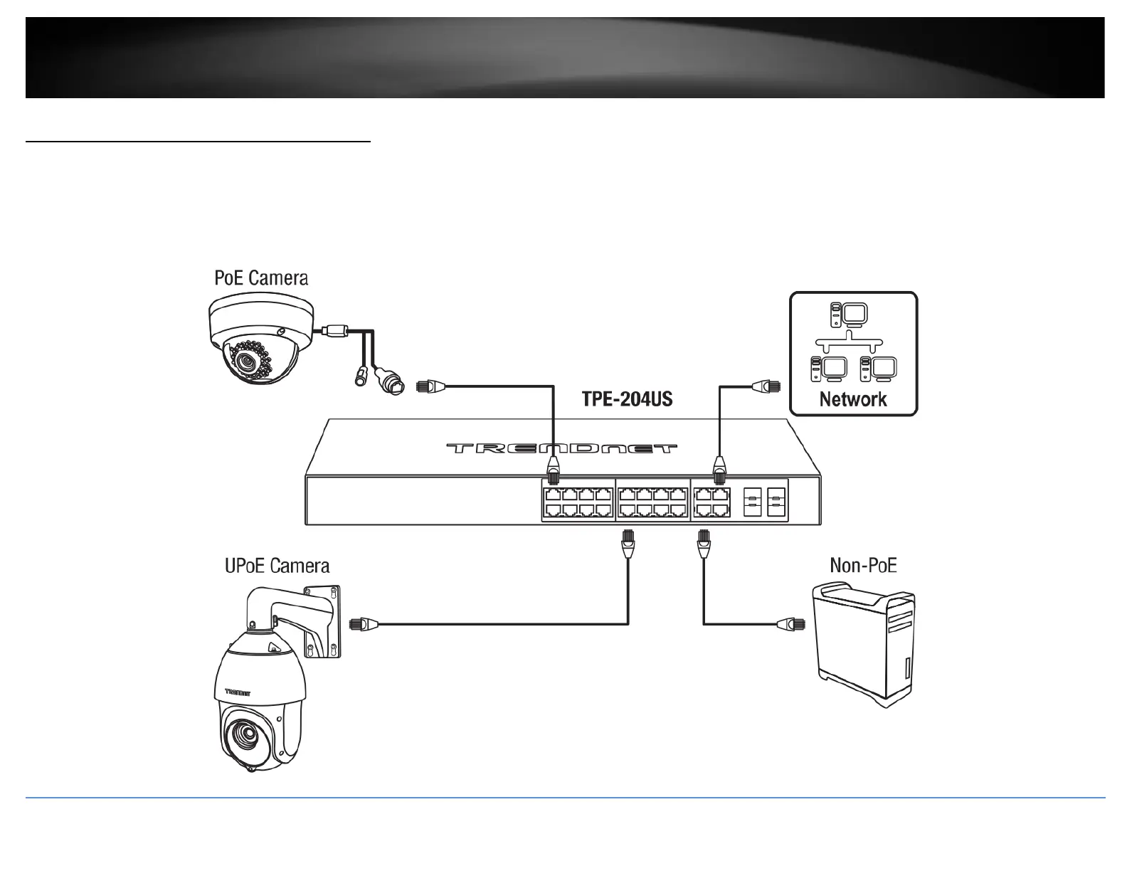 You can connect computers or other network devices to your switch using Ethernet cables to connect them to one of the available Gigabit Ethernet Ports, Gigabit Ethernet PoE Ports,
