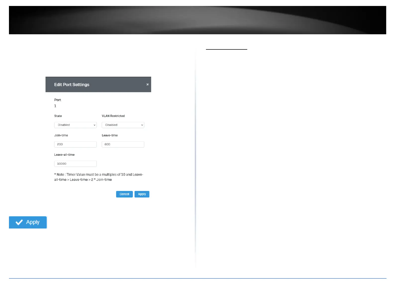 3. Review the settings. Click Apply to save changes.
