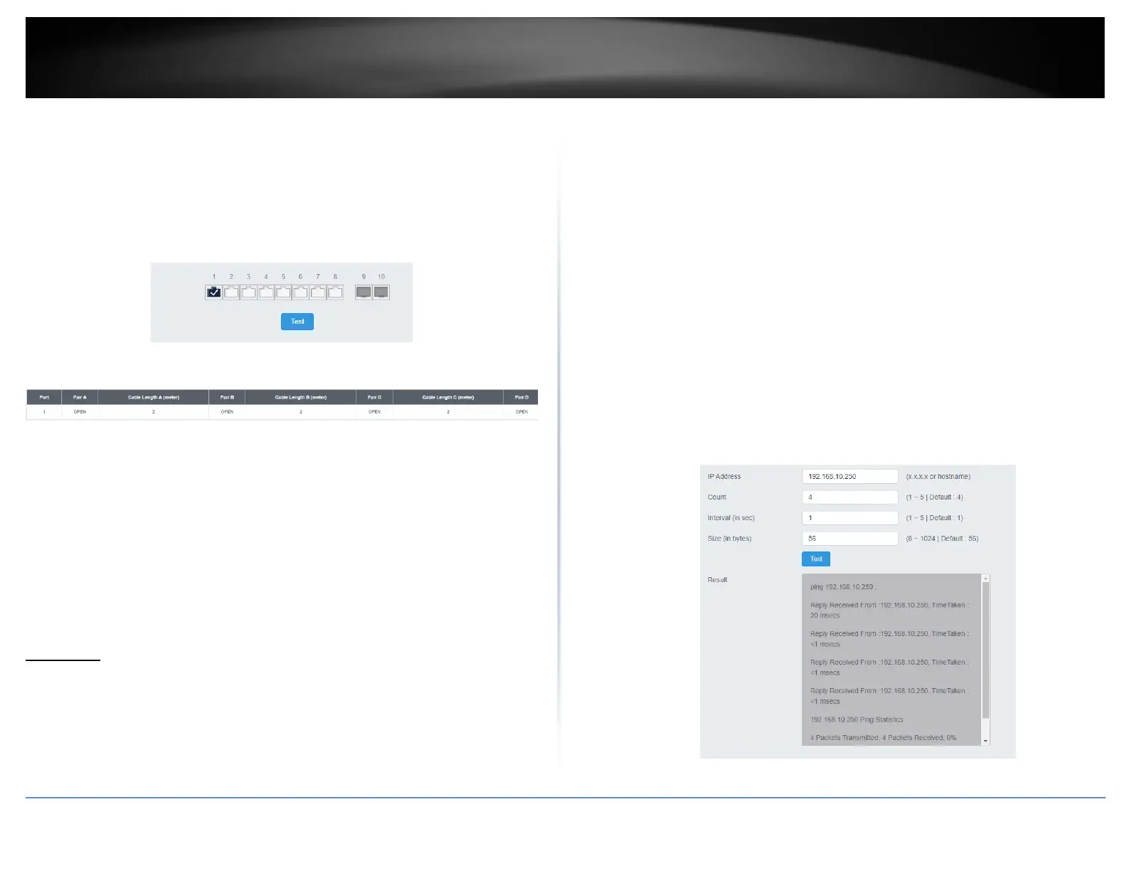 3. Select the Port from the switch to run the cable diagnostic and click Test to run the
