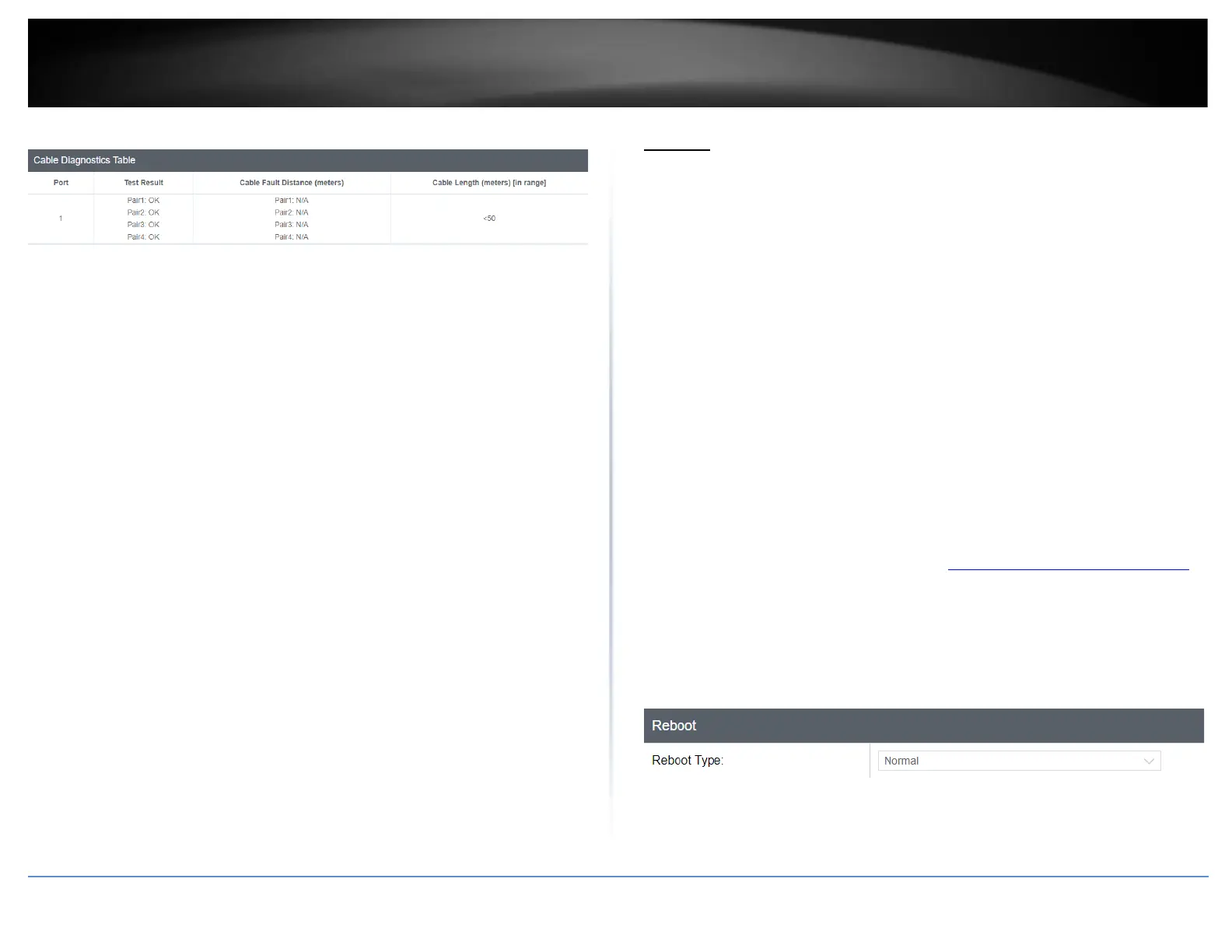 The results will be displayed in the Cable Diagnostic Table below.