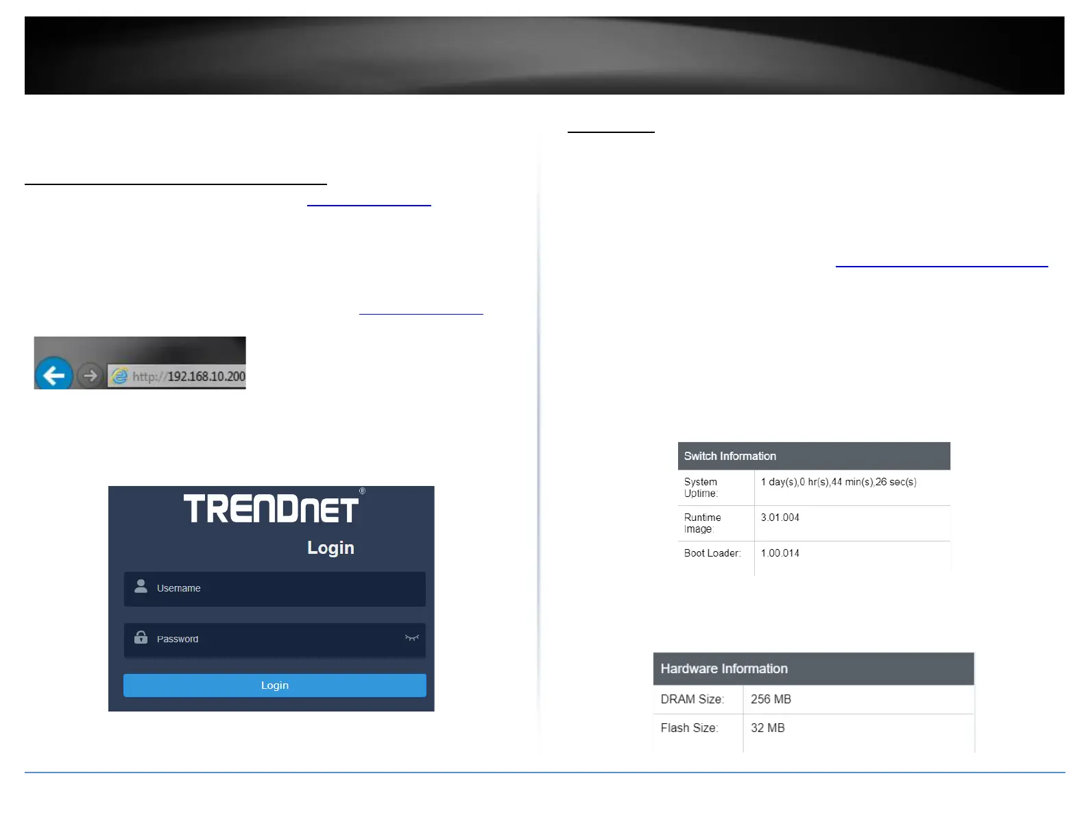 TRENDnet TEG-3284WS - Accessing Switch Management Interfaces; Access Your Switch Management Page; Dashboard; View Your Switch Status Information