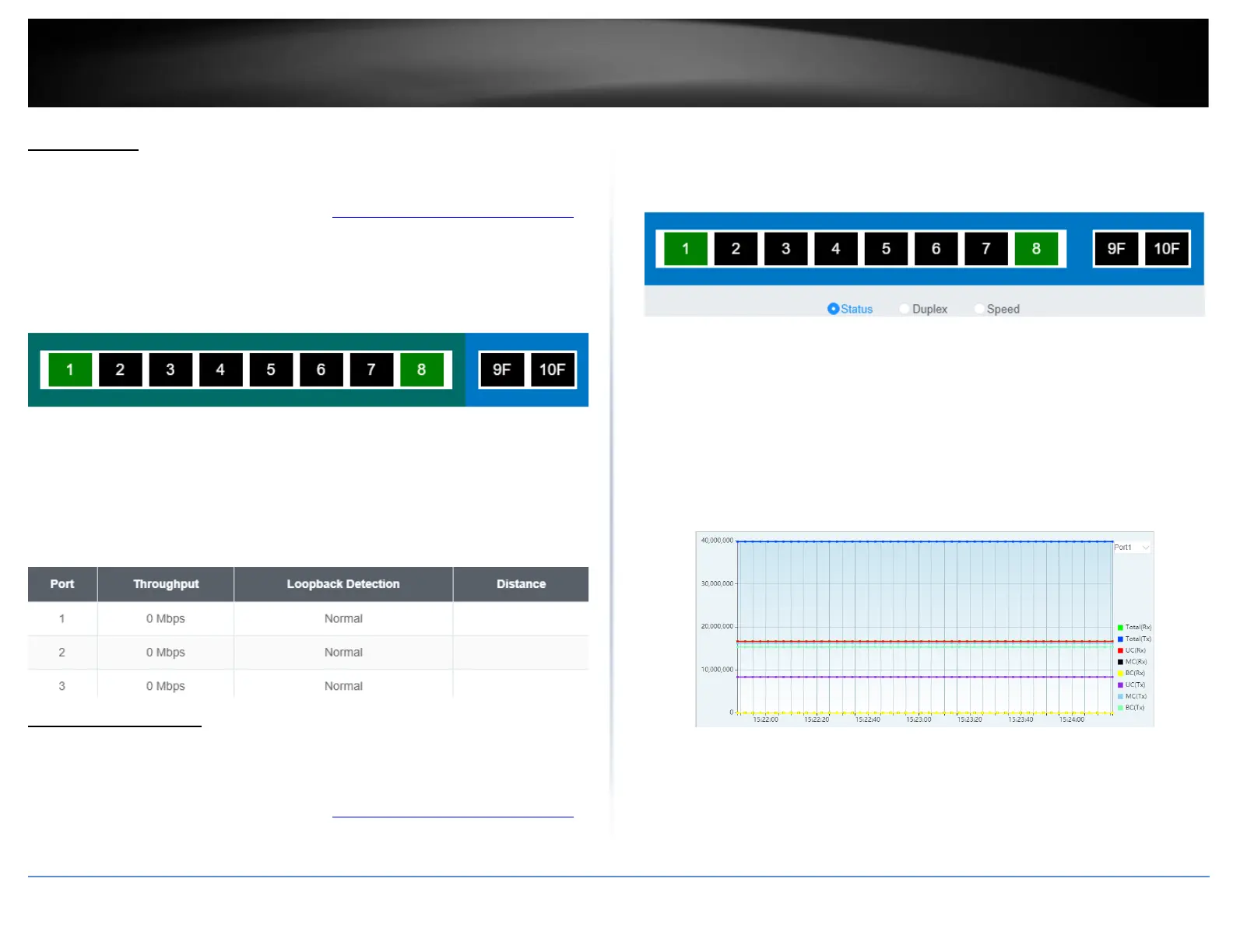 ports that are connected. Select Status, Duplex, or Speed to display which ports are