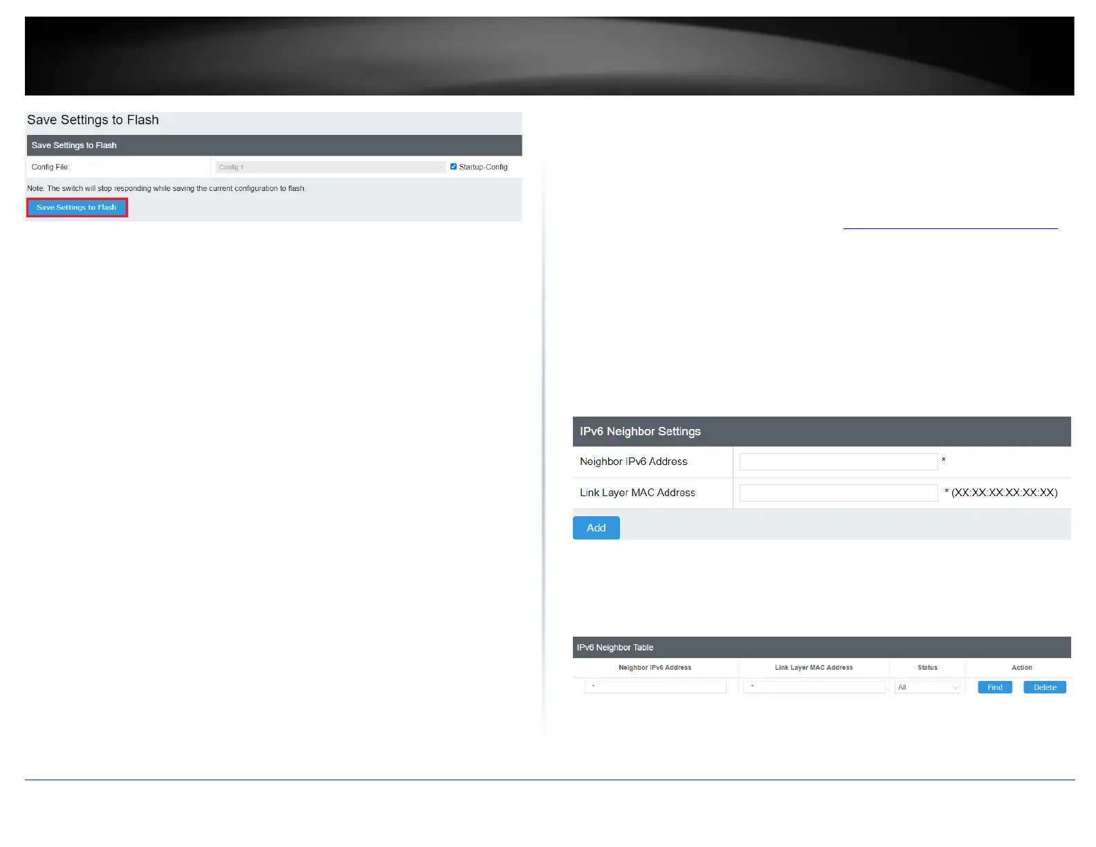 • Neighbor IPv6 Address: Specifies the neighbor IPv6 address.