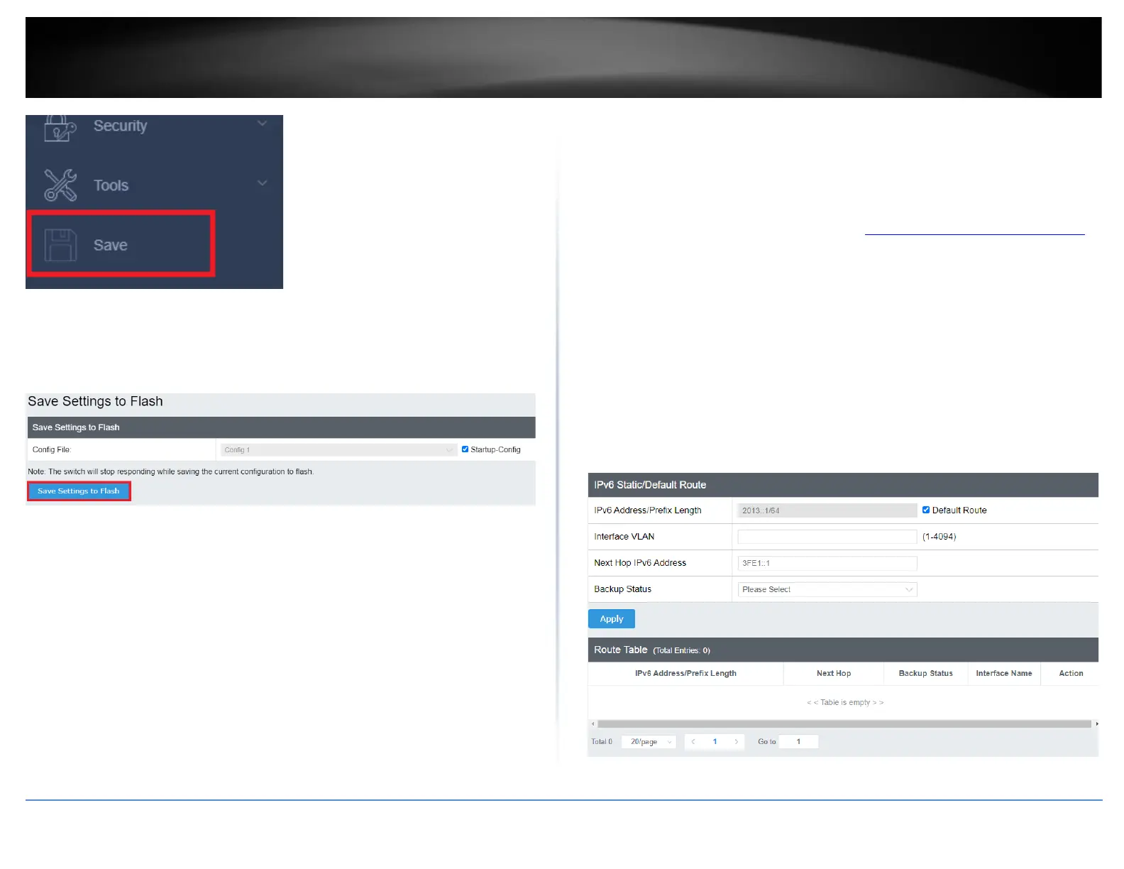 This section allows you to set your switch’s IPv6 routing table default, or specify a static