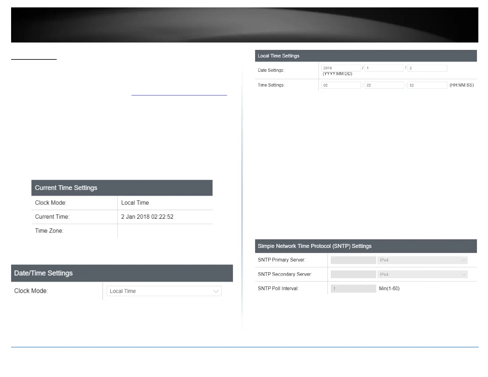 Internet SNTP time servers, the switch must have valid IPv4/IPv6