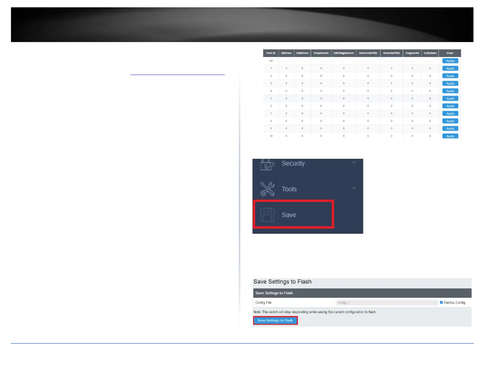 • Apply: Click the Apply button to clear port specific Traffic information.