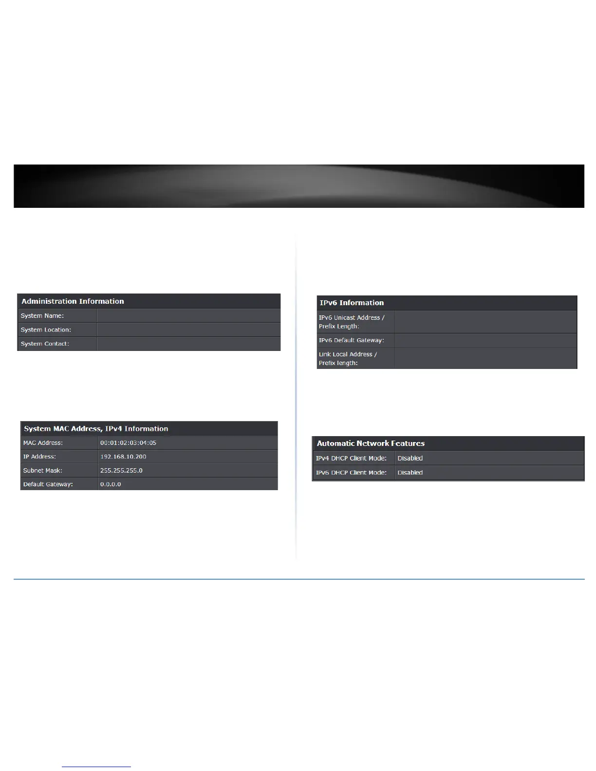System MAC Address, IPv4 Information