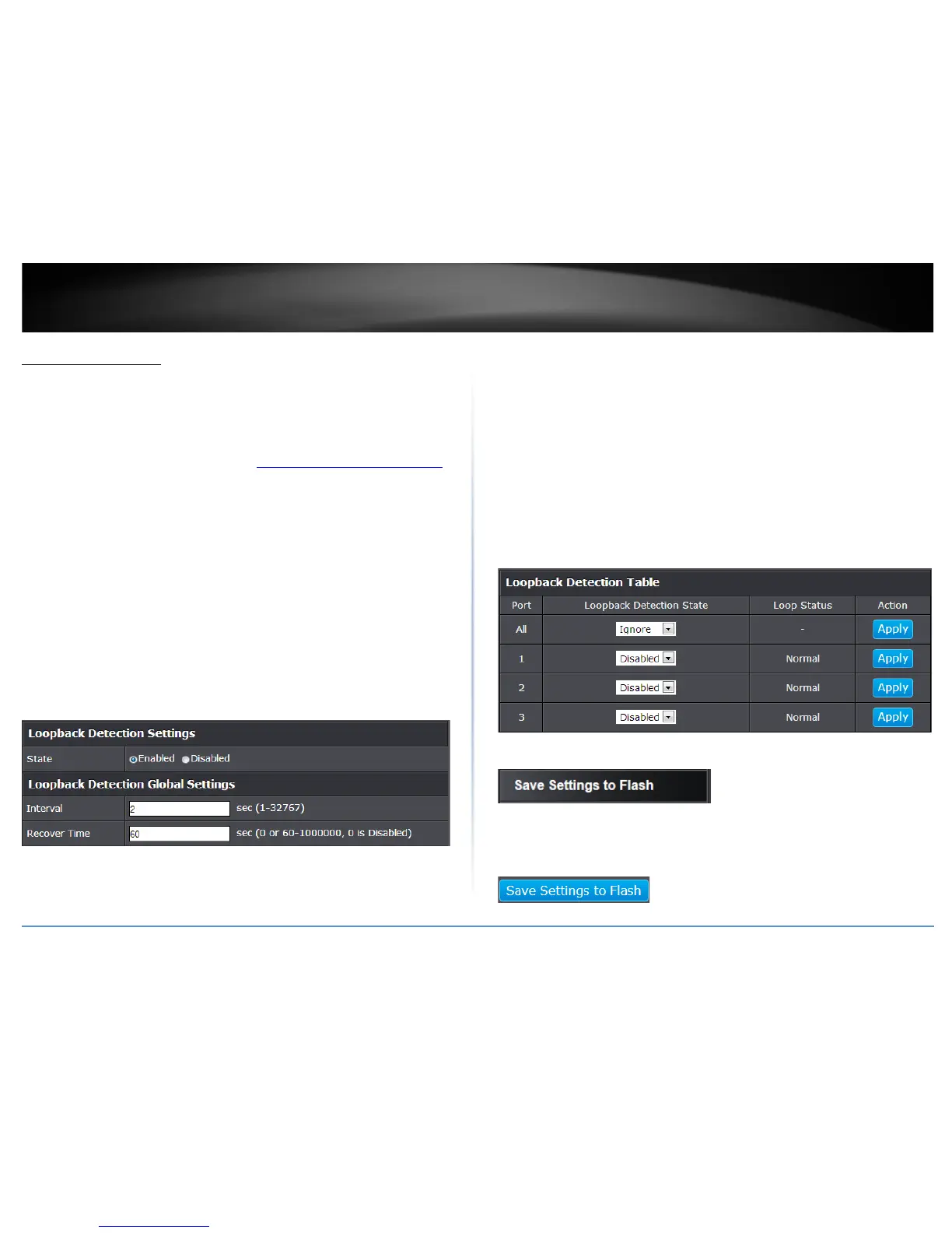 • Enabled: This selection enables the Loopback Detection feature for each port.