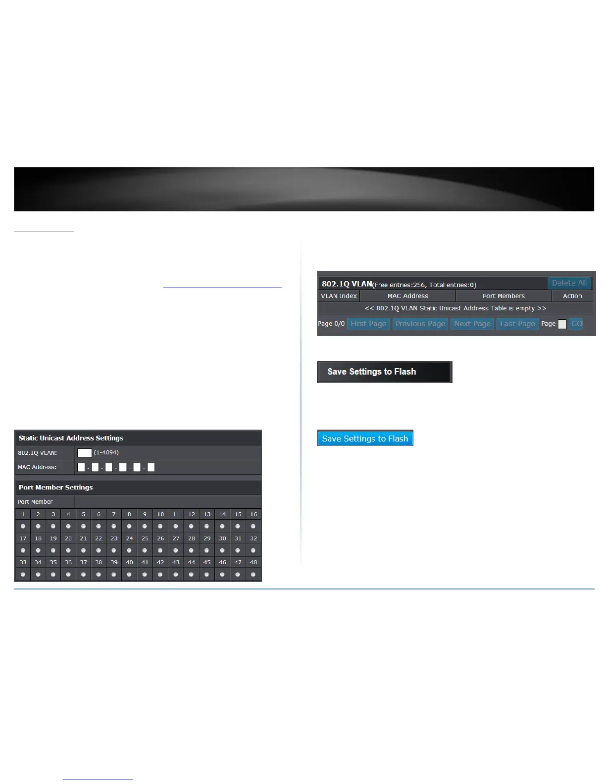 In this section, you can add static unicast entries to the switch configuration.