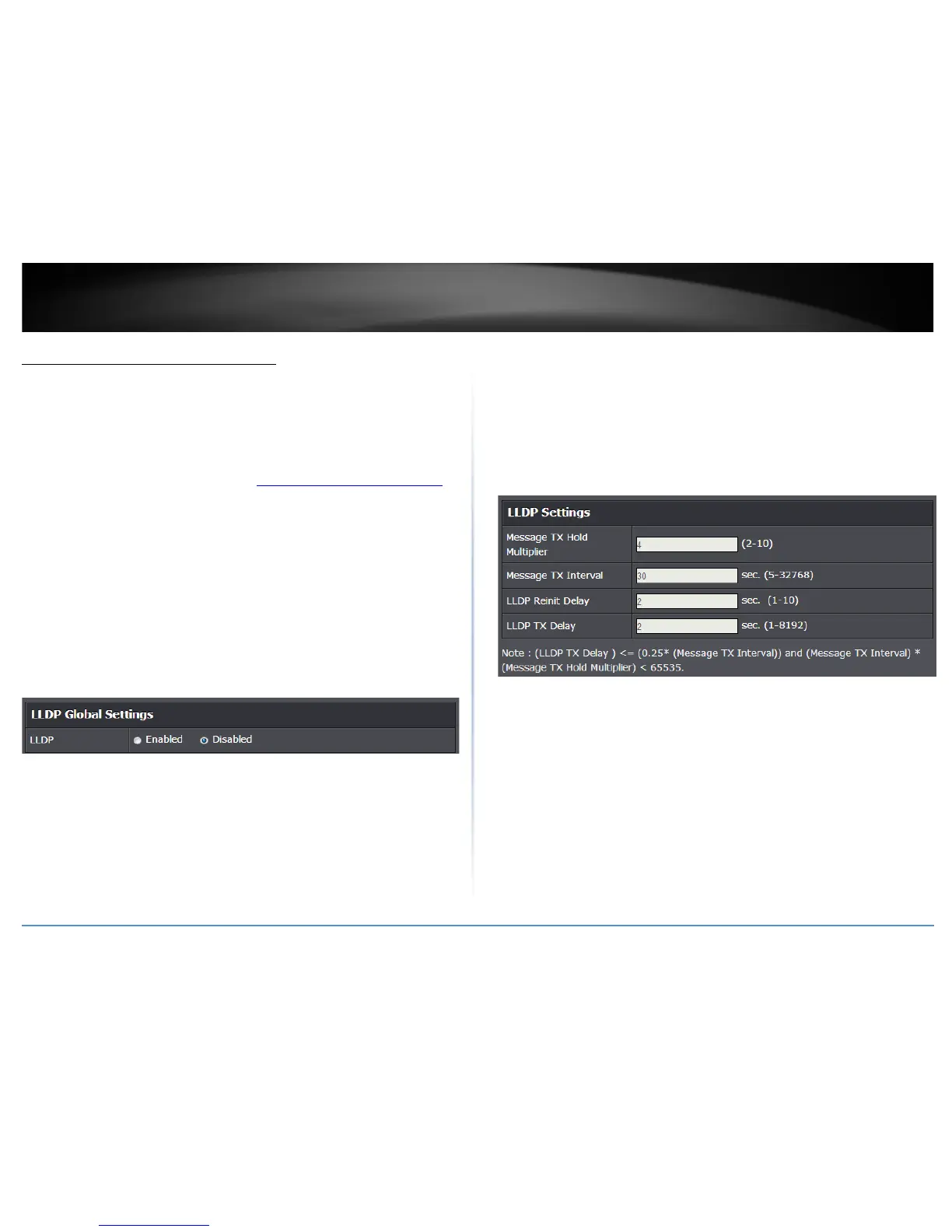 LLDP TX Delay: Sets the value of the transmission delay timer, which is the minimum