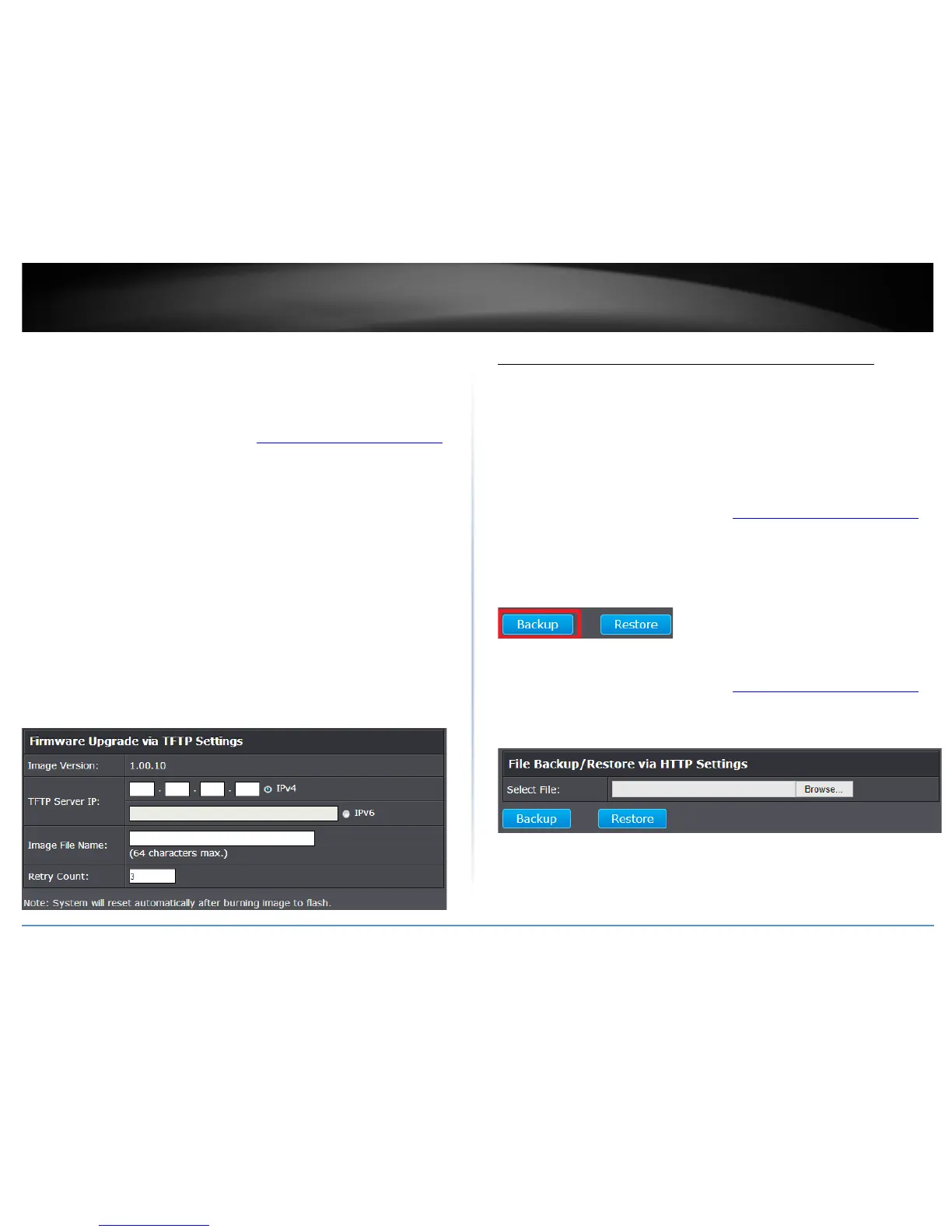 3. Click Backup to save the configuration file (config.bin) to your local hard drive.