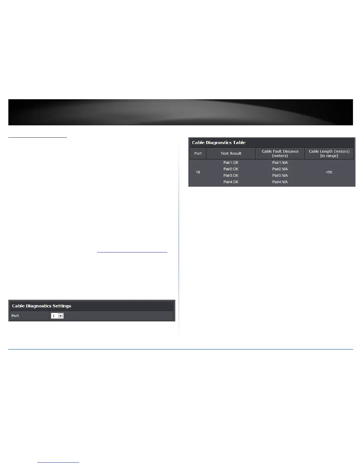The switch provides a basic cable diagnostic tool in the GUI for verifying the pairs in