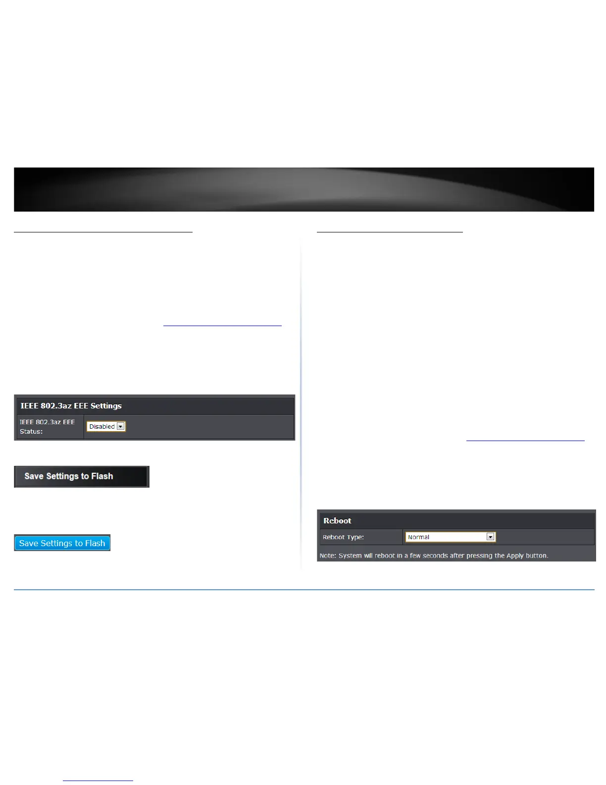 Note: You may want to save the settings to flash before reboot the switch under Save