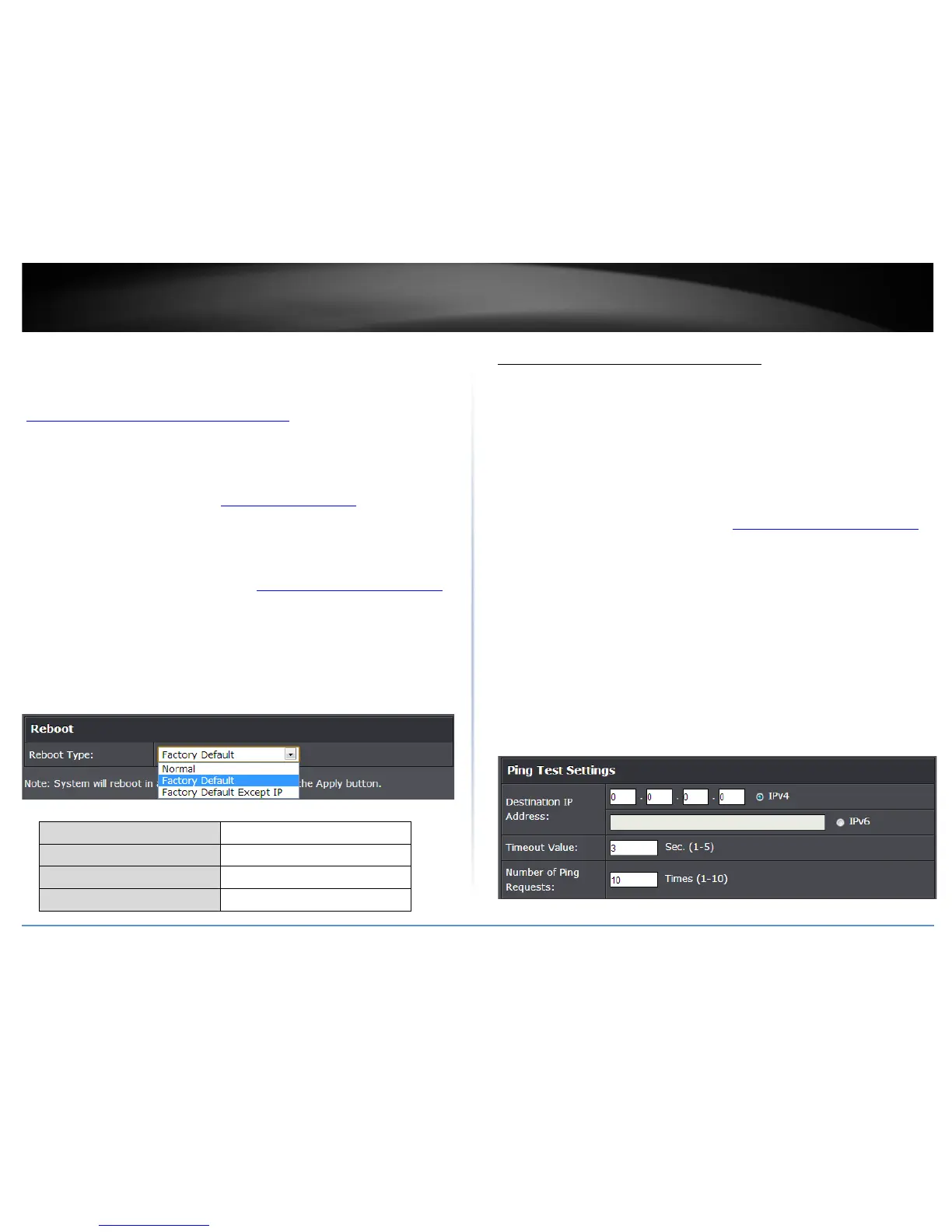 • Factory Default: Resets all switch configuration settings to factory defaults