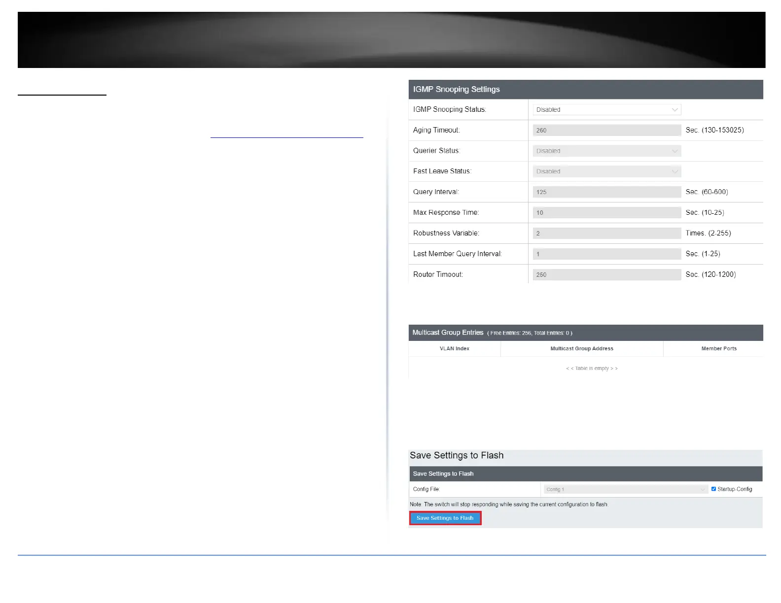 Network > IGMP Snooping > Settings
