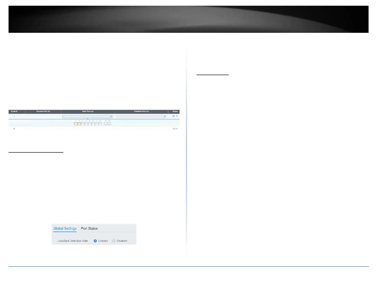 TRENDnet TEG-7124WS - Loopback Detection; Global Settings; Voice VLAN