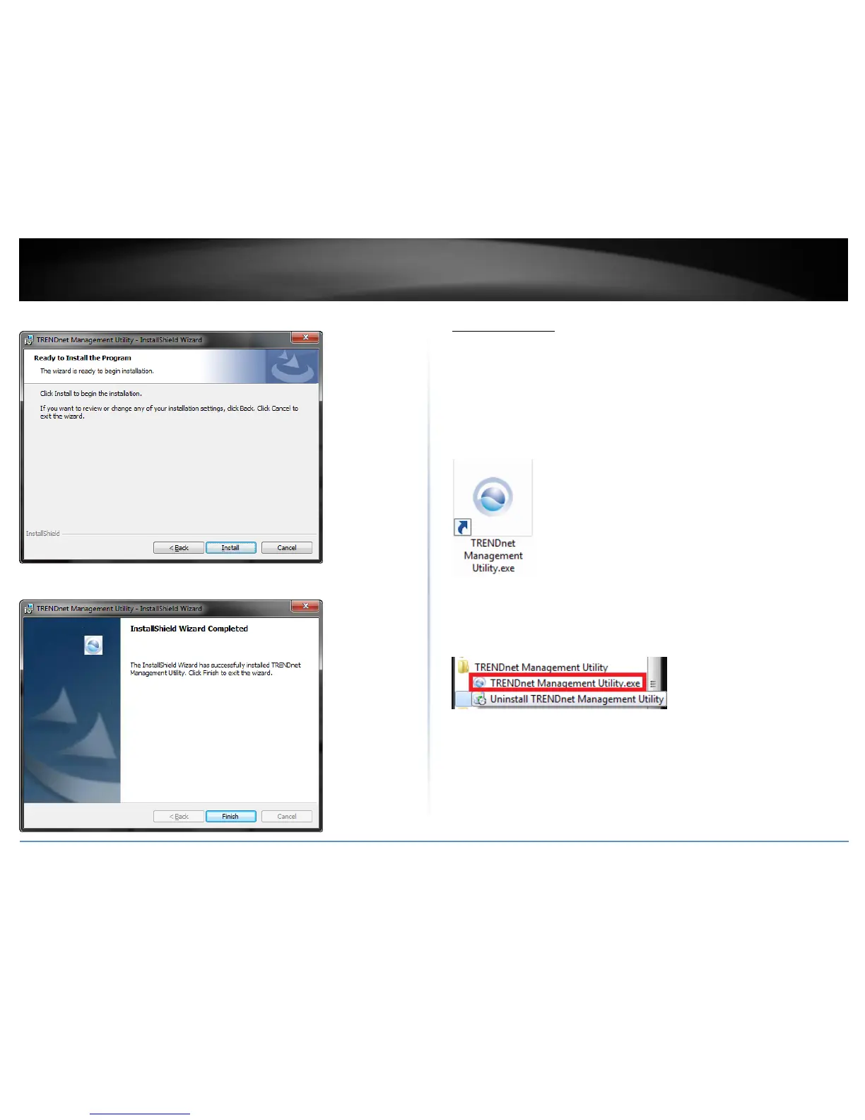Start > Programs (or All Programs) > TRENDnet Management Utility > TRENDnet