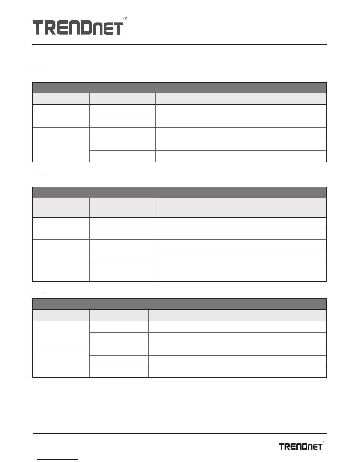 Nota: Verificare che i LED dello switch funzionano correttamente. Si prega di consultare la tabella qui sotto: