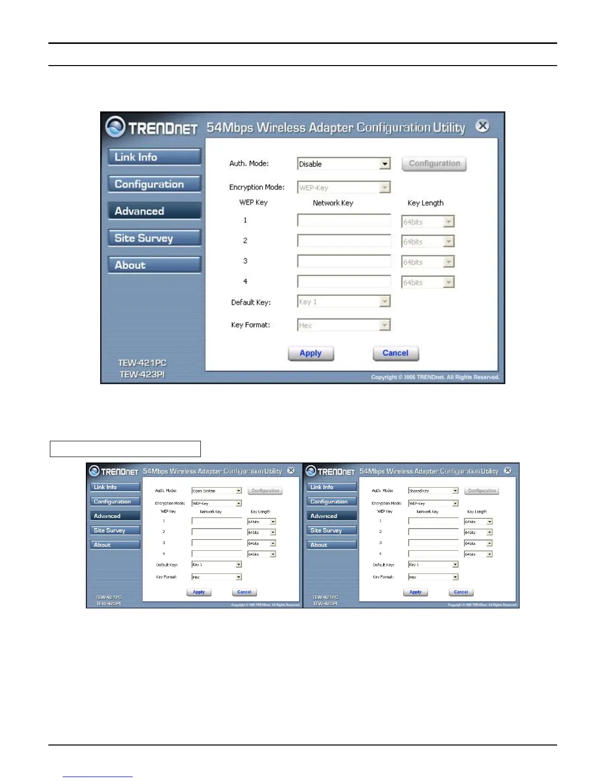 WEP Key 1~4: choose the encryption way, either in HEX or ASCII formats, and