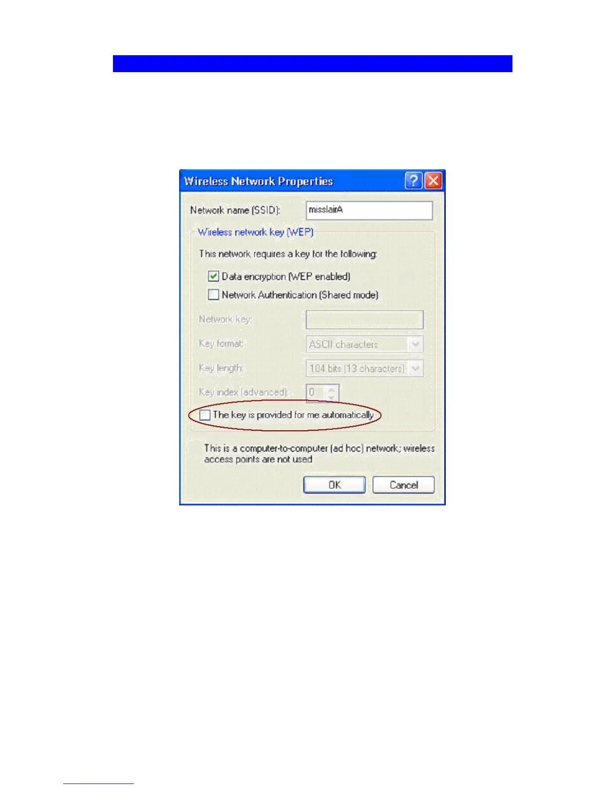 Instead, you must enter the WEP key manually, ensuring it matches the WEP key used on the