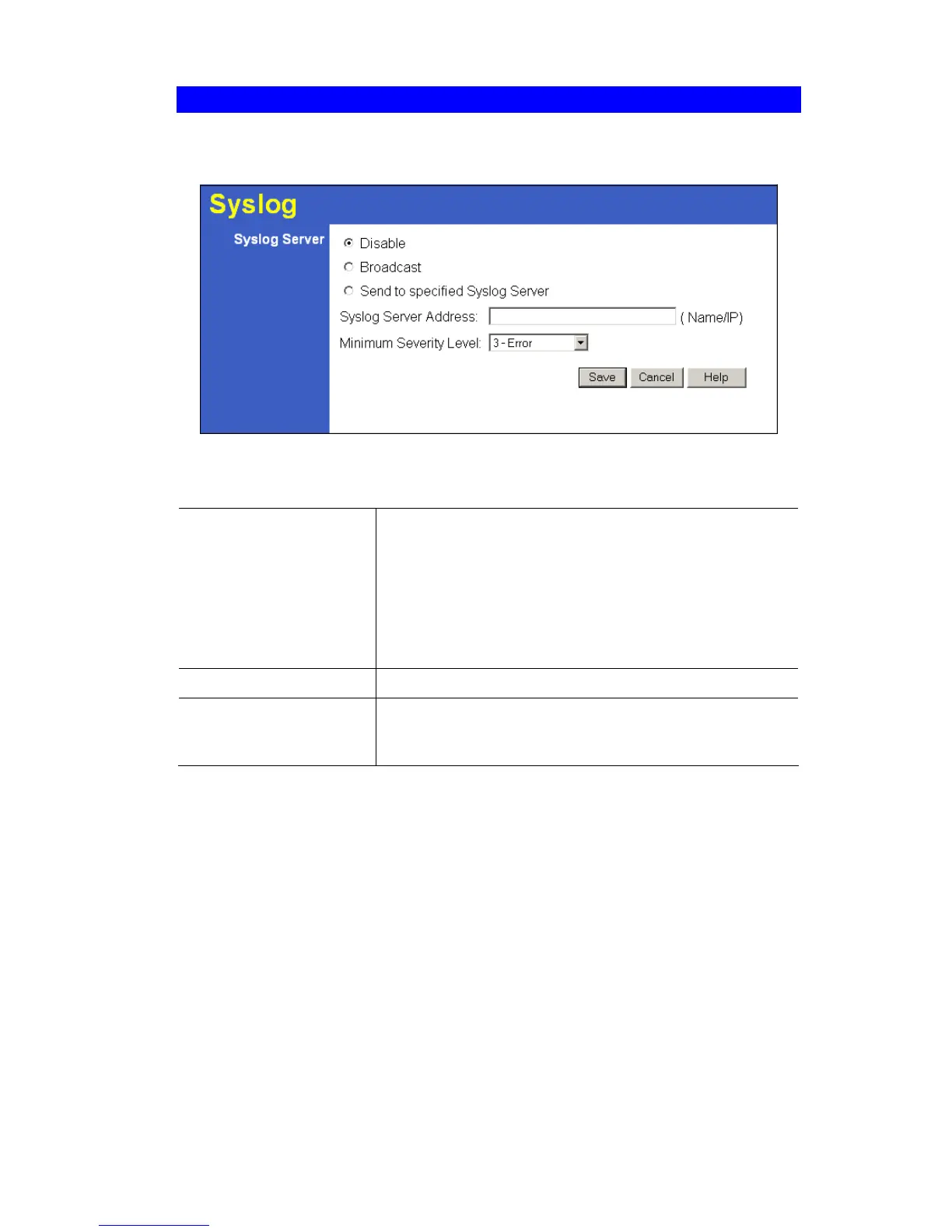 • Disable - Syslog server is not used.