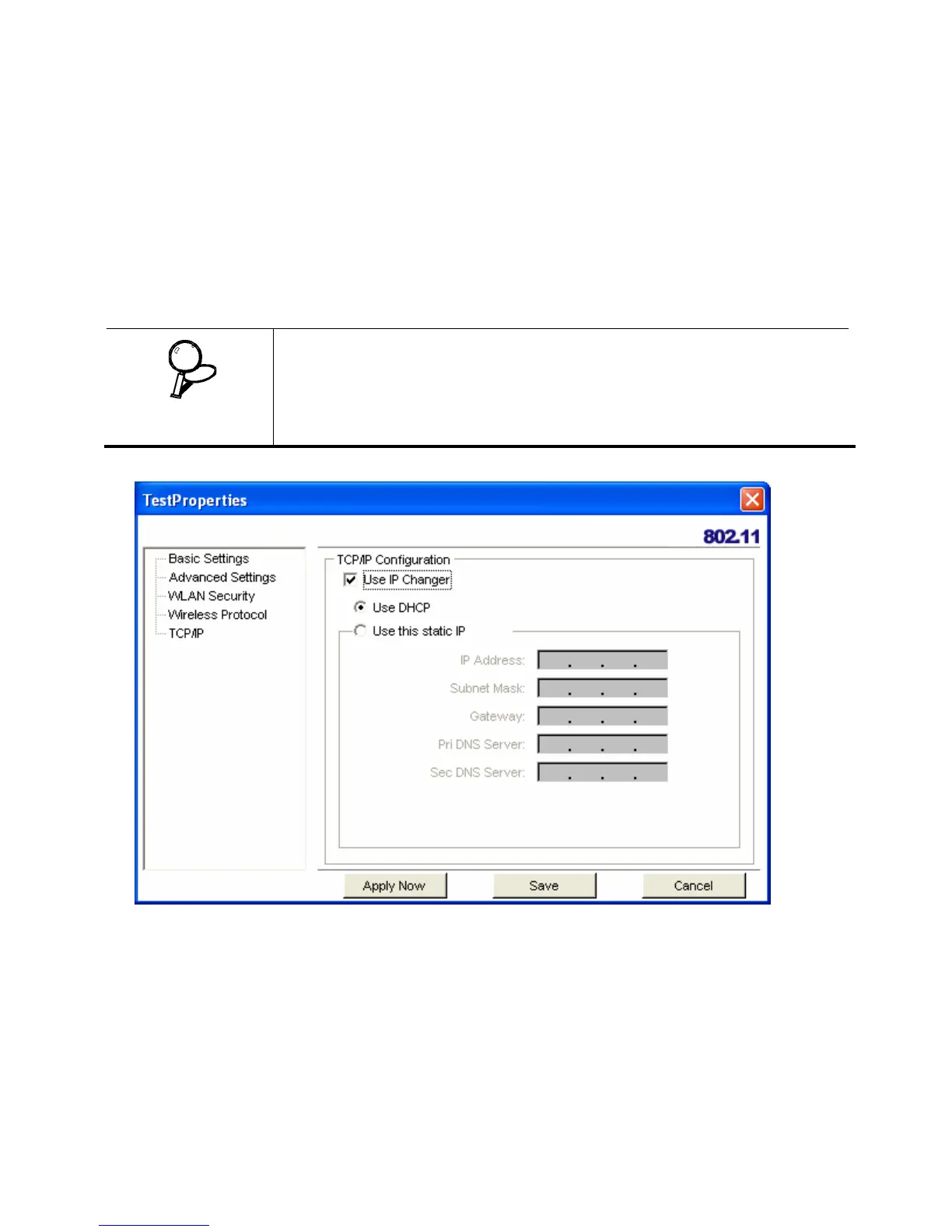 Select the Use IP Changer checkbox. This allows you to bypass your existing wireless TCP/ IP