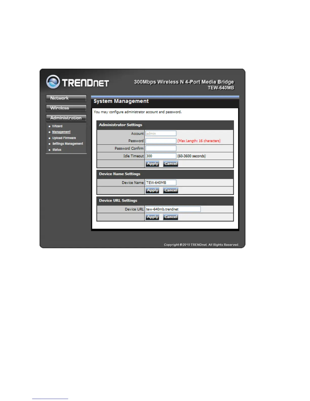 default URL of “tew-640MB” leaving “.trendnet”