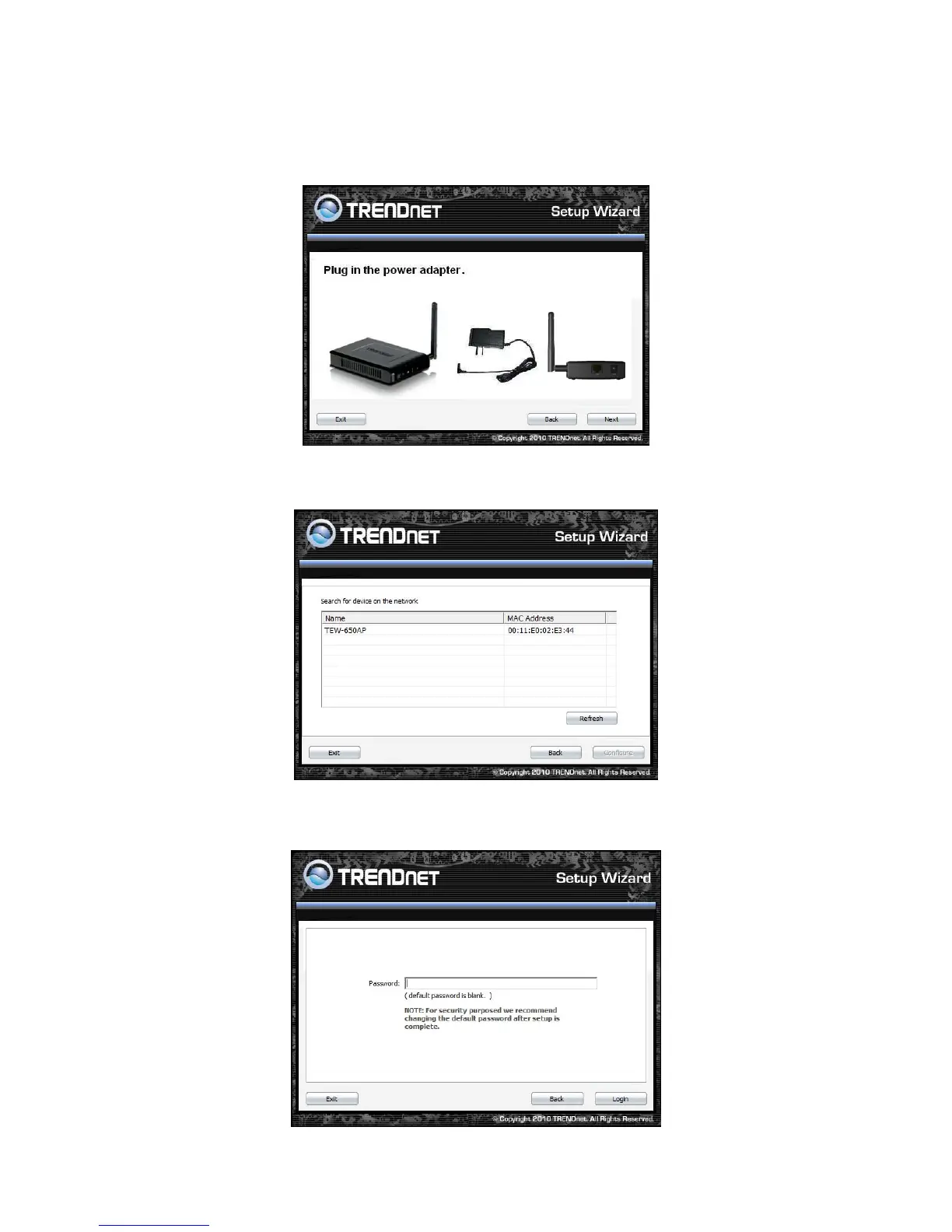 Configure button to continue (default TEW-650AP IP Address is 192.168.10.100).