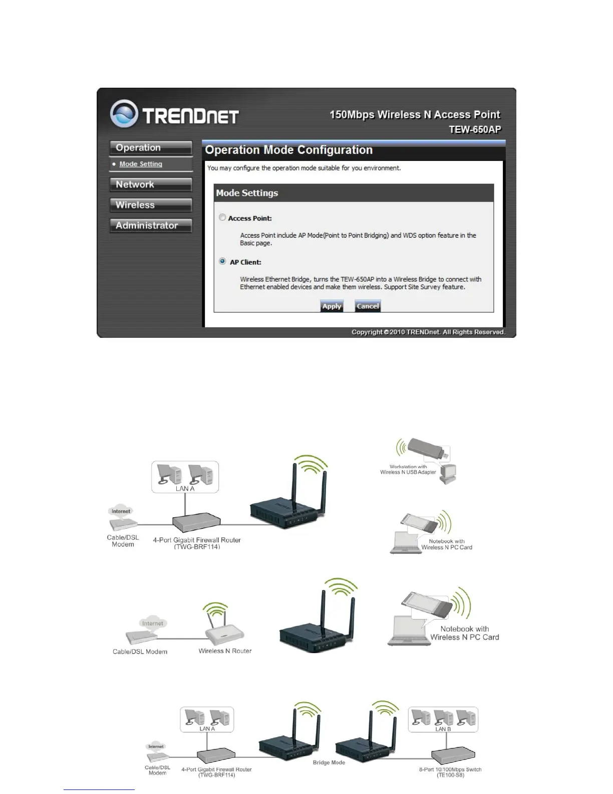 TRENDnet TEW-650AP - Operation Mode Setting; Access Point