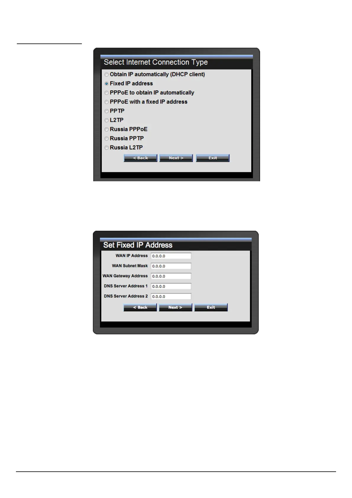 If the Internet Service Provider (ISP) assigns a fixed IP address, choose this option