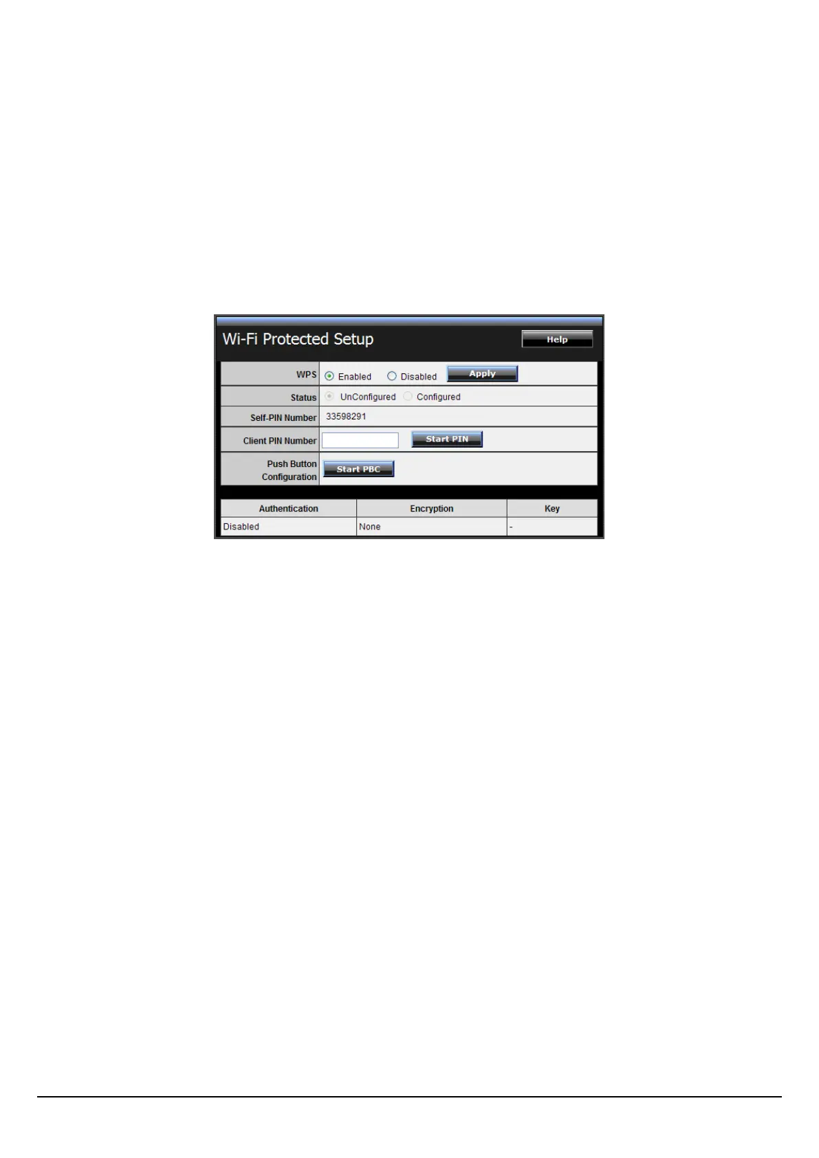 This screen enables users to configure the Wi-Fi Protected Setup function.