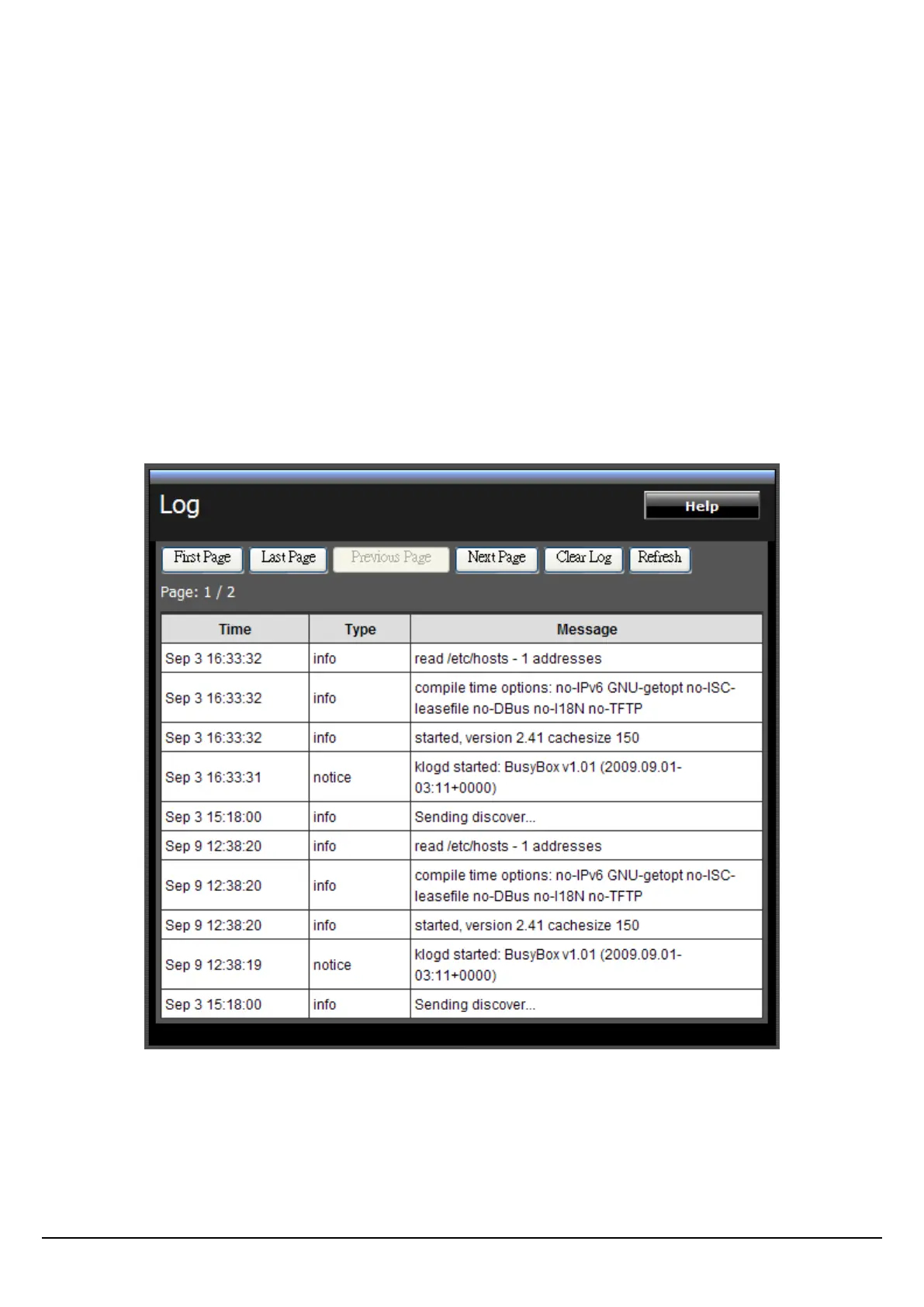 Click “First Page” to view the first page of the log
