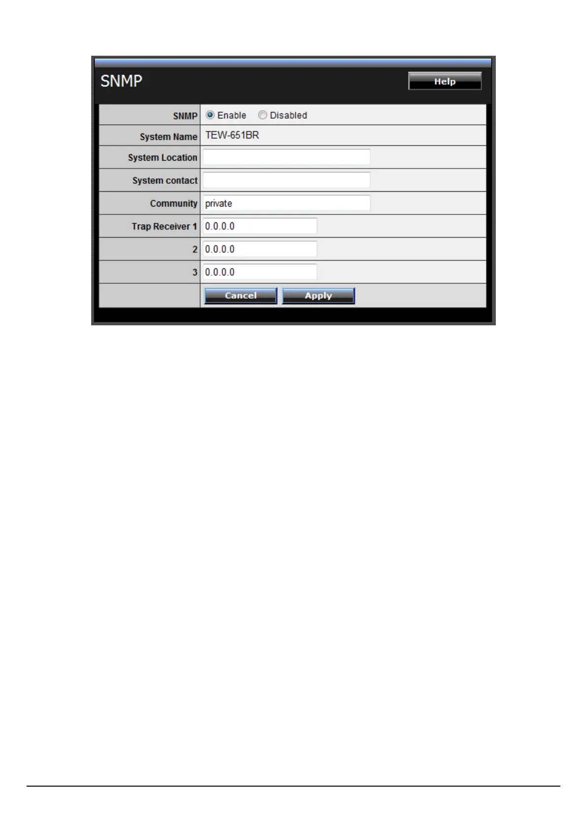station/Trap Receiver. Up to 3 SNMP management stations/Trap Receivers may be